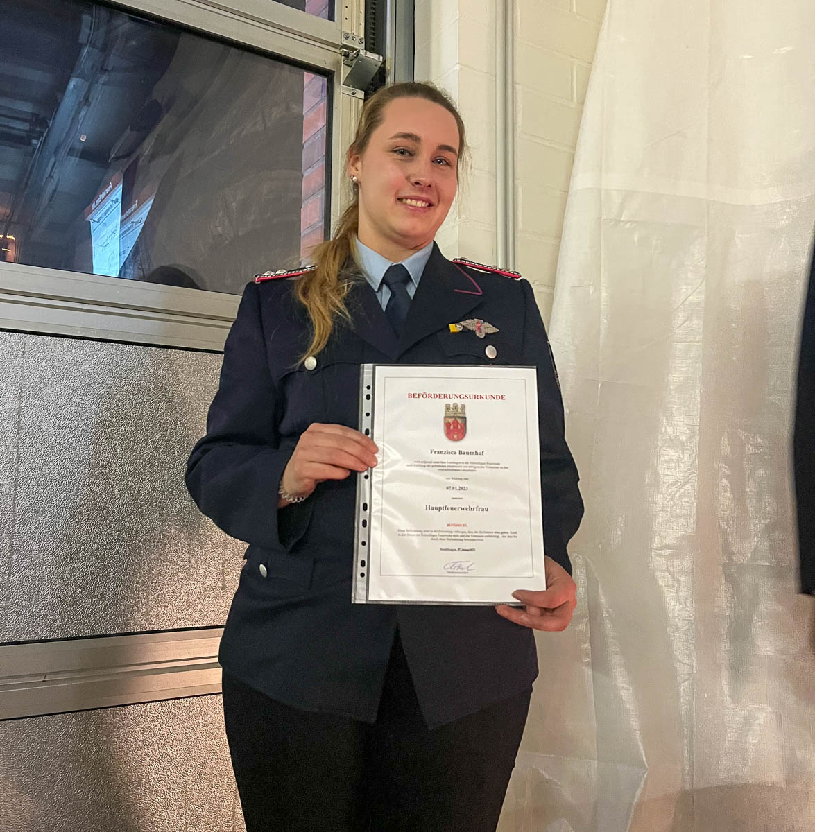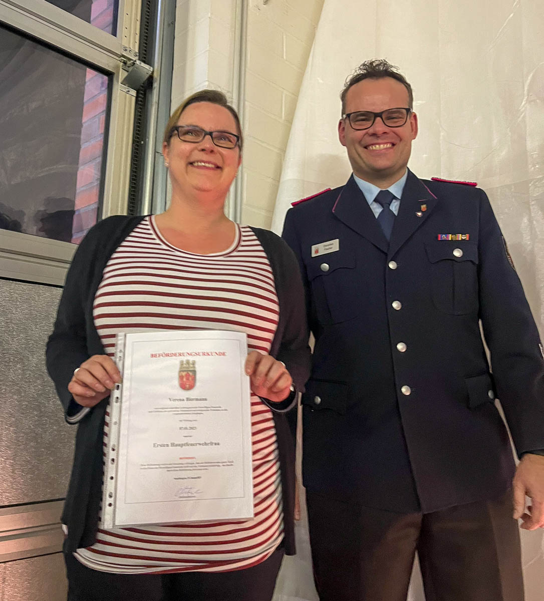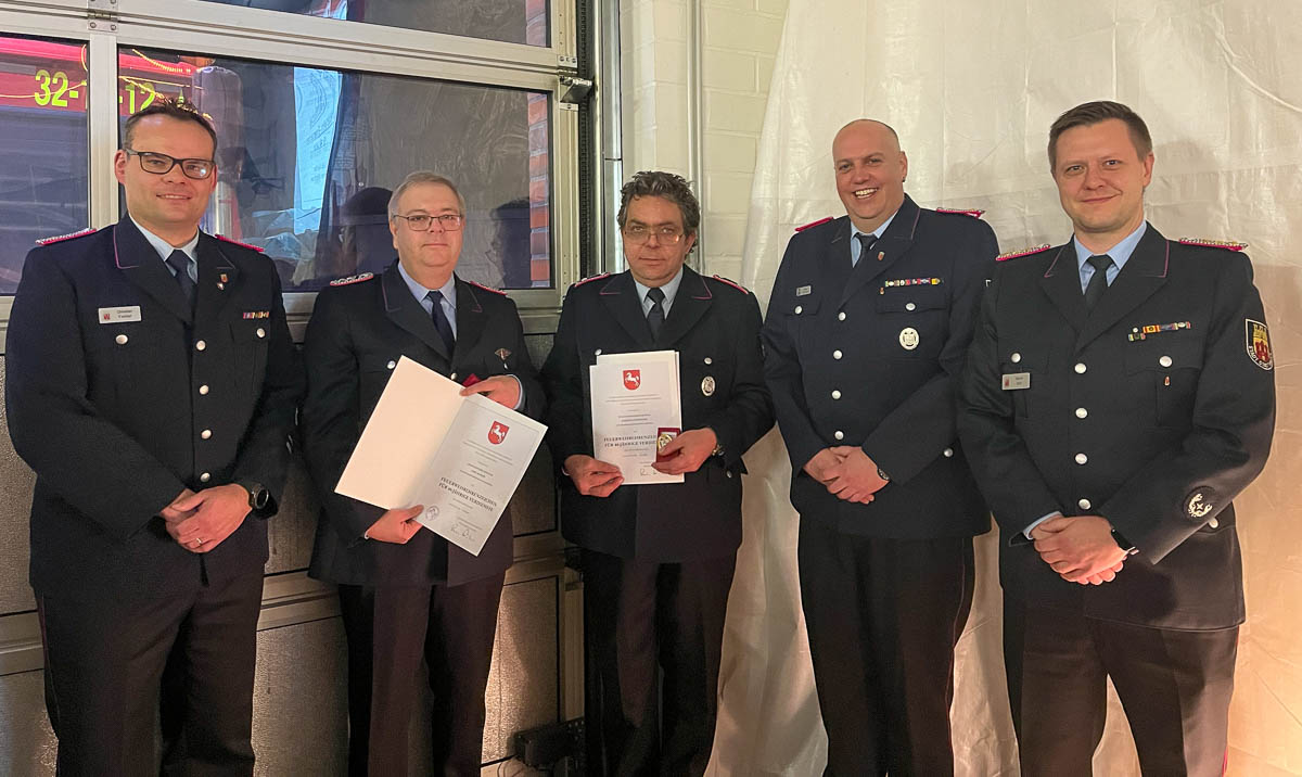 Befördert wurden Franziska Baumhof zur Hauptfeuerwehrfrau und Verena Biermann zur Ersten Hauptfeuerwehrfrau. Udo Ascher und Karsten Wittchow wurde von Stadtbrandmeister Martin Buhr das Niedersächsische Ehrenzeichen für 40-jährige aktive Mitgliedschaft verliehen.