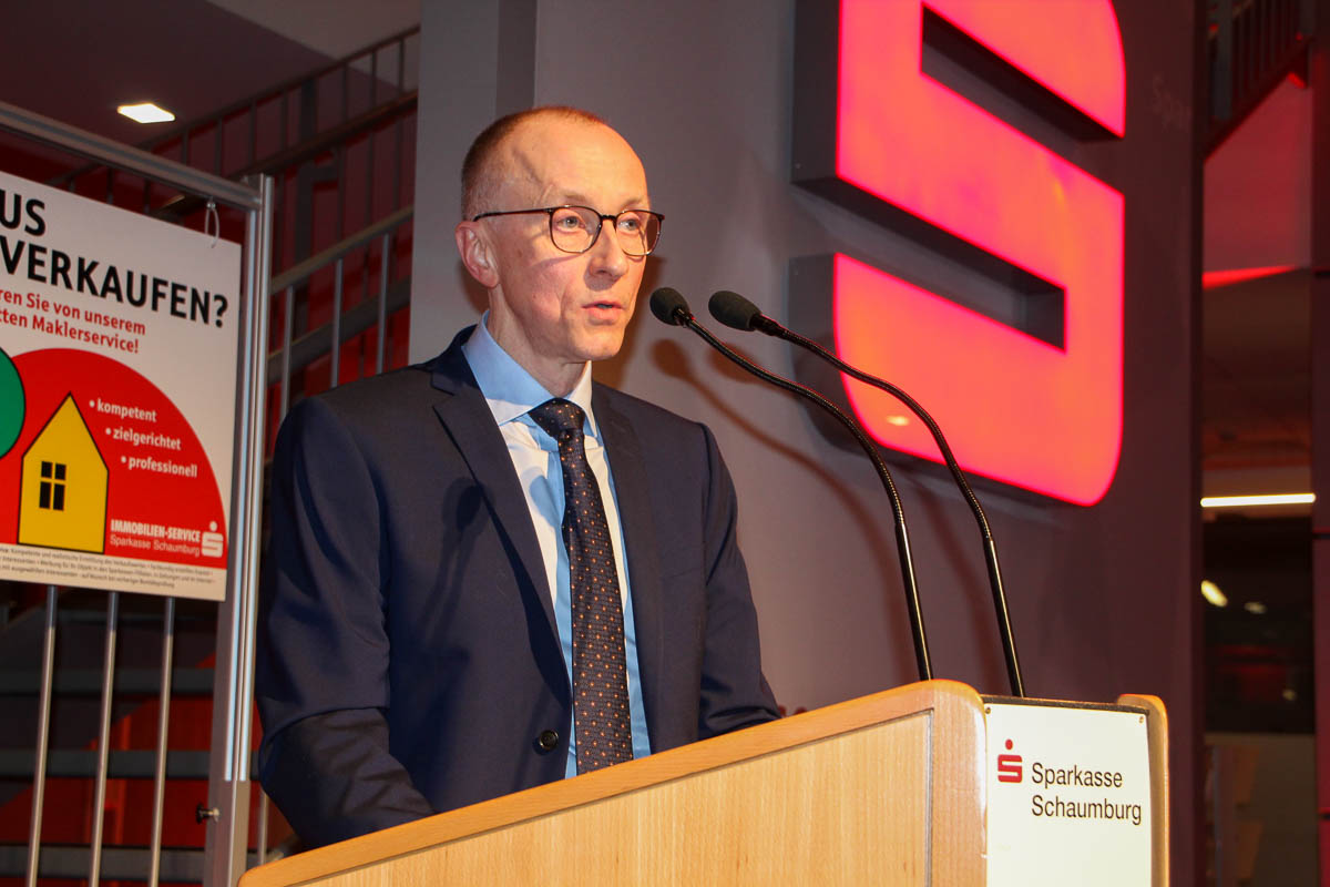 Oliver Schiller, Vorstand Sparkasse in Schaumburg, begrüßte als Hausherr die zahlreichen Gäste: „Zwei Jahre haben wir auf diese liebgewonnene Veranstaltung verzichten müssen. Nach dem vergangenen Jahr voller Krisen haben wir heute den Auftakt für einen krisensicheres 2023 erlebt. Ich wünsche ein gesundes neues Jahr und dass wir die Zeit nutzen, um Kontakte zu knüpfen und das gesellige Zusammensein genießen“.