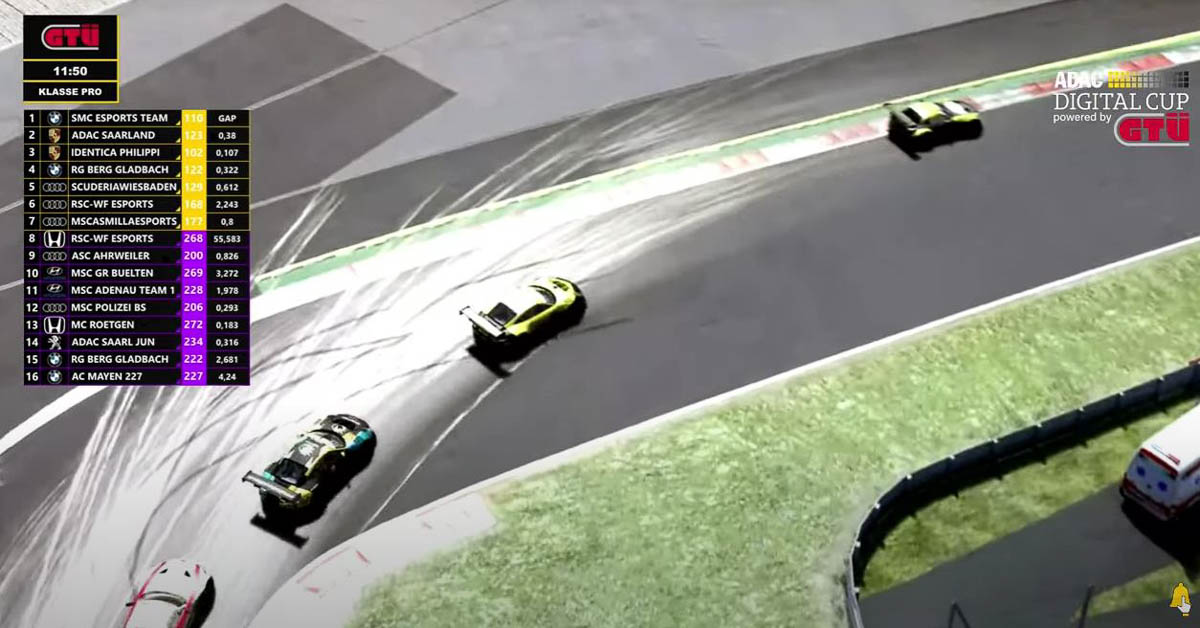 In sechs eSport Centern verteilt saßen die Teilnehmer in ihren Full Motion Simulatoren, die SMC Piloten im „race2fit“ Hannover. Luc Maddox Neuleuf fuhr bei optimalen Wetterbedingungen den ersten Sprint auf der 4,3 km langen Strecke. Nach den Qualifikationsrunden ging es von Platz vier in den fliegenden Start. Ziemlich schnell konnte Neuleuf die Führung des Feldes übernehmen und diese auch recht lange halten, immer wieder mit Blick auf den eng folgenden Wagen vom AC Saarland. Die ersten Autos der SP3T Klasse wurden überrundet und es kam durch genau solch ein Fahrzeug dann zu einer Kollision. Der Stadthäger BMW wurde von der Strecke gedrückt und fiel auf Platz sechs zurück. Durch die Schäden am Auto war ein Topspeed nicht mehr möglich und die verlorenen Plätze konnten nicht mehr gut gemacht werden. Mit Platz fünf ging es über die Ziellinie.