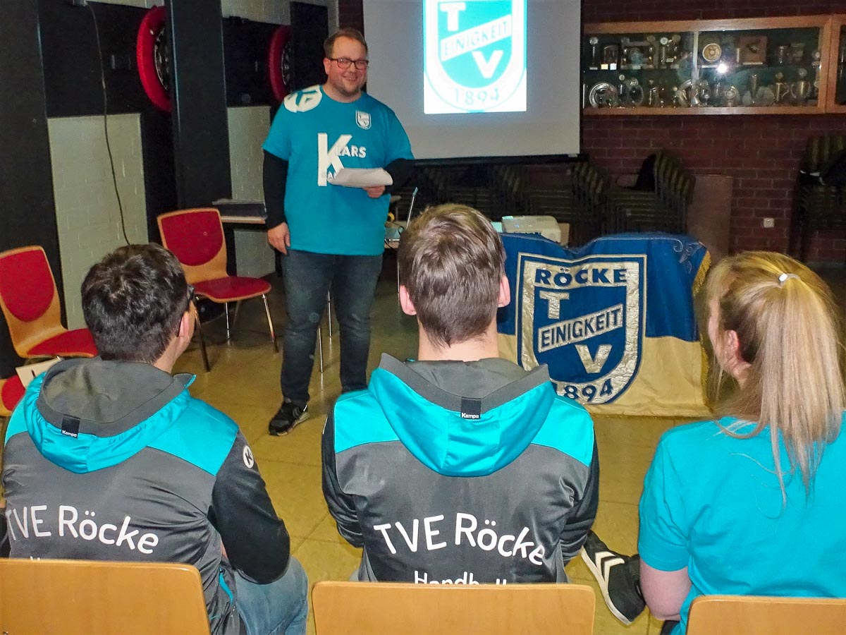 (Röcke) „Wir wollen auch im kommenden Jahr die Dynamik und den Spaß in den gesamten Verein hineintragen“, sagte Nils Driftmeier, Leiter der Handballsparte des TVE Röcke, zum Abschluss seiner Rede bei der diesjährigen Abteilungsversammlung. Zuvor blickte er im Eveser Schützenhaus auf den Neustart der Handballer zurück. Mit Driftmeier und fünf Sparten-Koordinatoren hat im Vorjahr ein neues Team die Leitung übernommen.