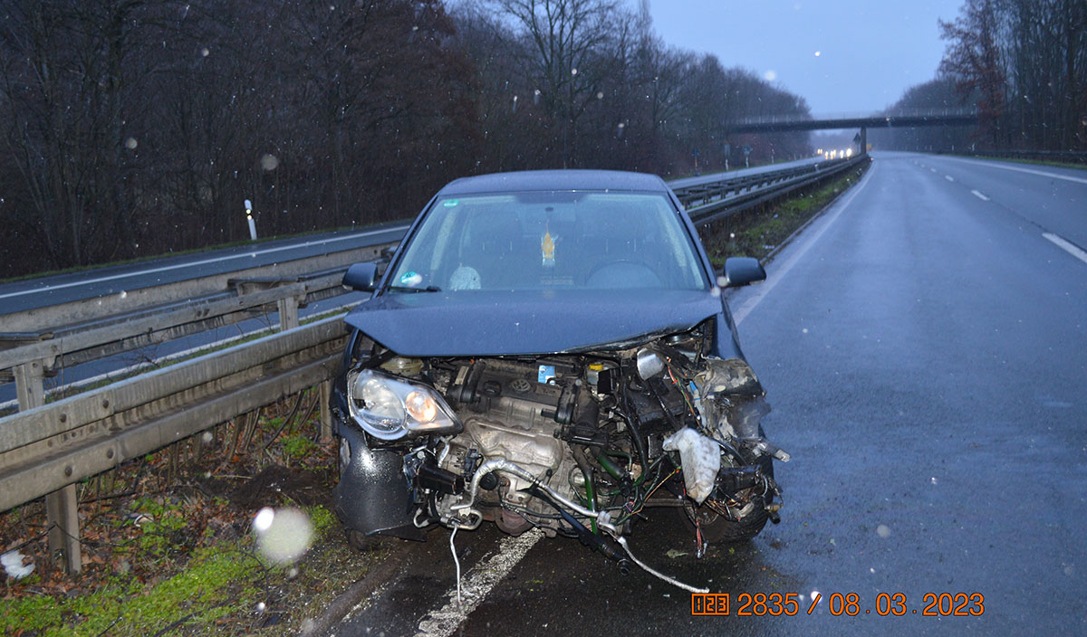 Der aus Minden kommend in Fahrtrichtung Bückeburg fahrende VW-Fahrer drehte sich auf der Kraftfahrstraße und schlug mehrfach mit der Fahrzeugfront in der Leitplanke ein.