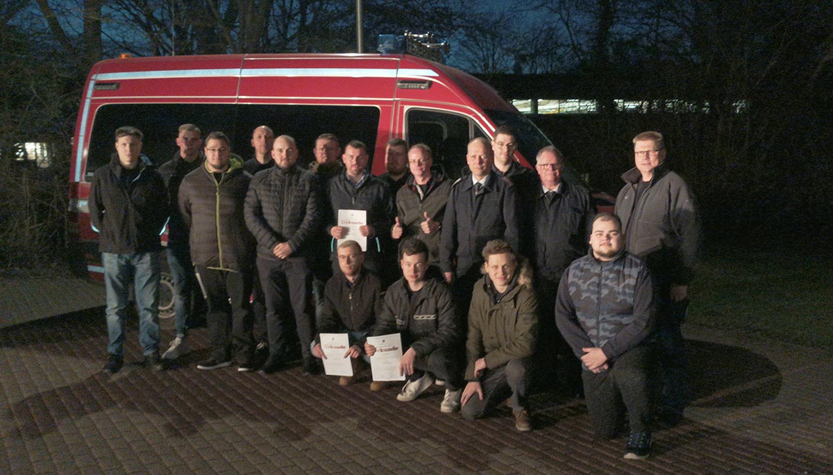 Auf der Agenda des Werkbrandmeisters Heiko Wilharm standen zudem zahlreiche Beförderungen. Wilharm beförderte zusammen mit seinem Stellvertreter Uwe Holstein 14 anwesende Werkfeuerwehrangehörige.