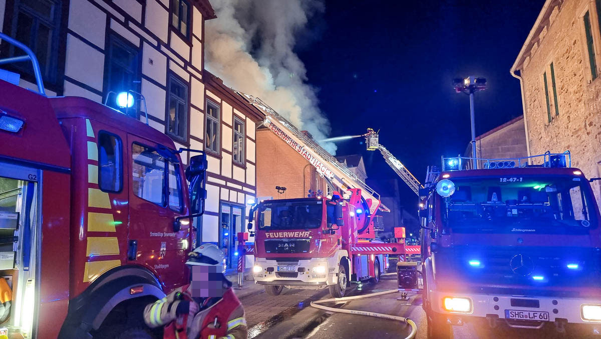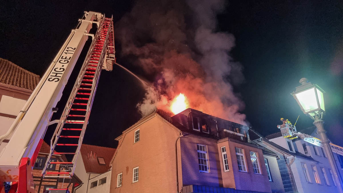 Hier war ein Feuer im zweiten Obergeschoss eines Hauses in der Bückeburger Innenstadt ausgebrochen und erforderte ein aufwendiges Vorgehen der Einsatzkräfte, um den Brand unter Kontrolle zu bekommen. Insgesamt waren 12 Trupps mit schwerer Atemschutzausrüstung im Einsatz.