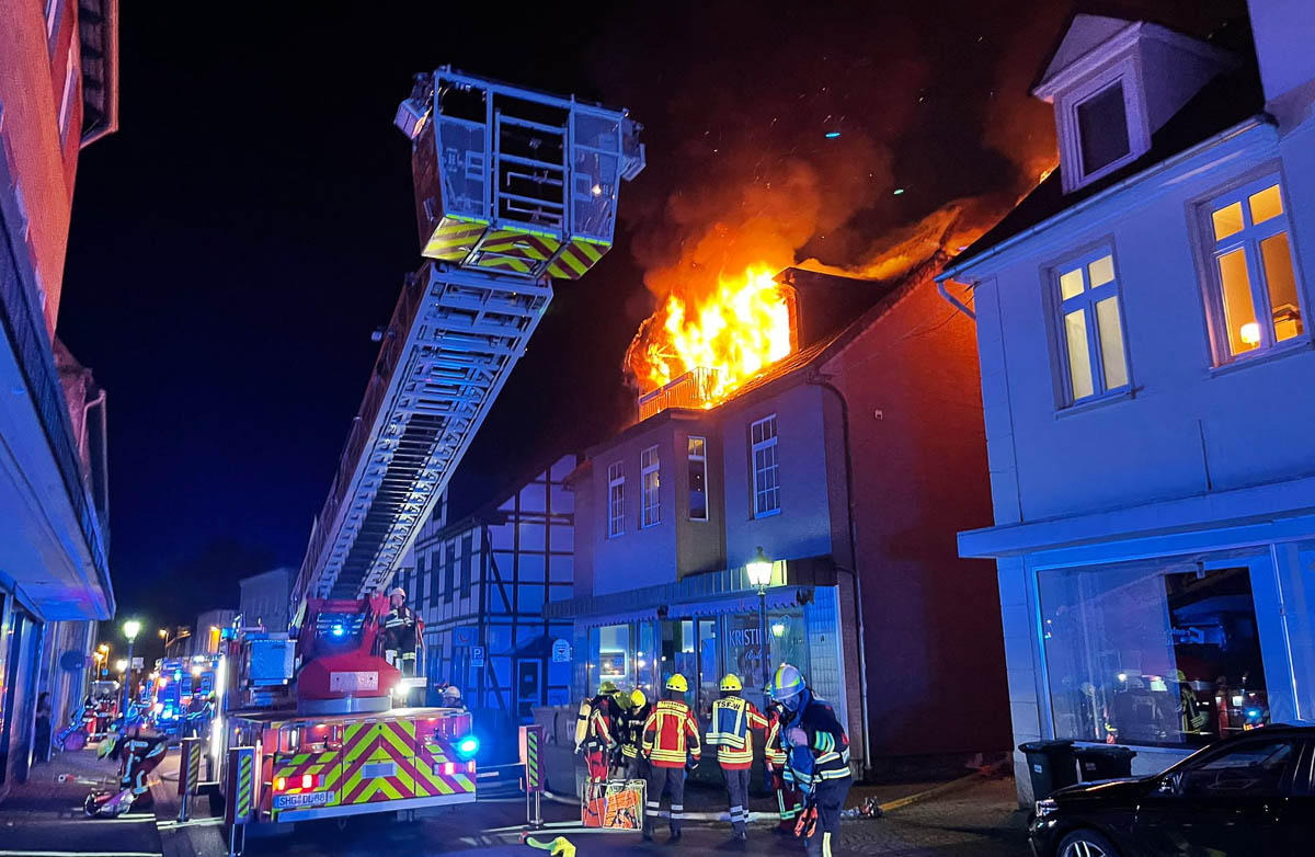 (Bückeburg) Am Ostersamstag, den 8. April, wurde ein Großaufgebot mehrerer Feuerwehren aus Bückeburg, Rinteln und Stadthagen gegen 22:01 Uhr zu einem Brand in die Schulstraße nach Bückeburg alarmiert.