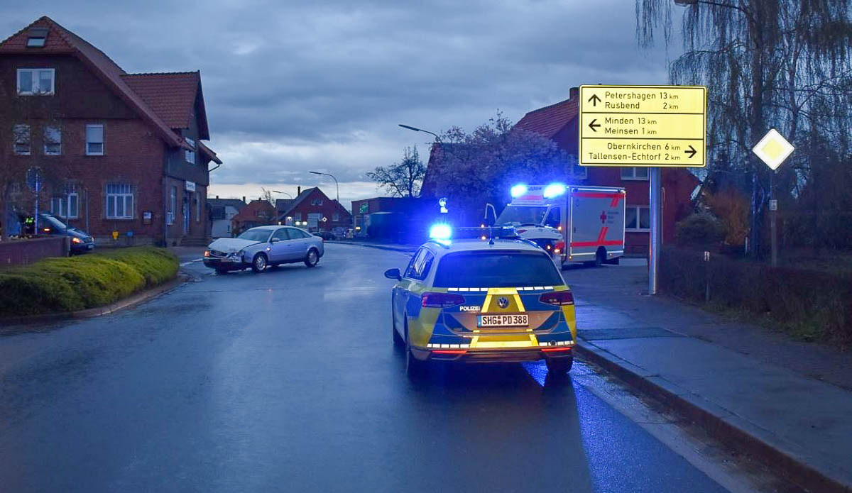 (Bückeburg) Auf der Kreuzung im Bückeburger Ortsteil Warber ist es gestern gegen 20.10 Uhr zwischen zwei PKW zu einem Verkehrsunfall gekommen. Es gab zwei Verletzte.