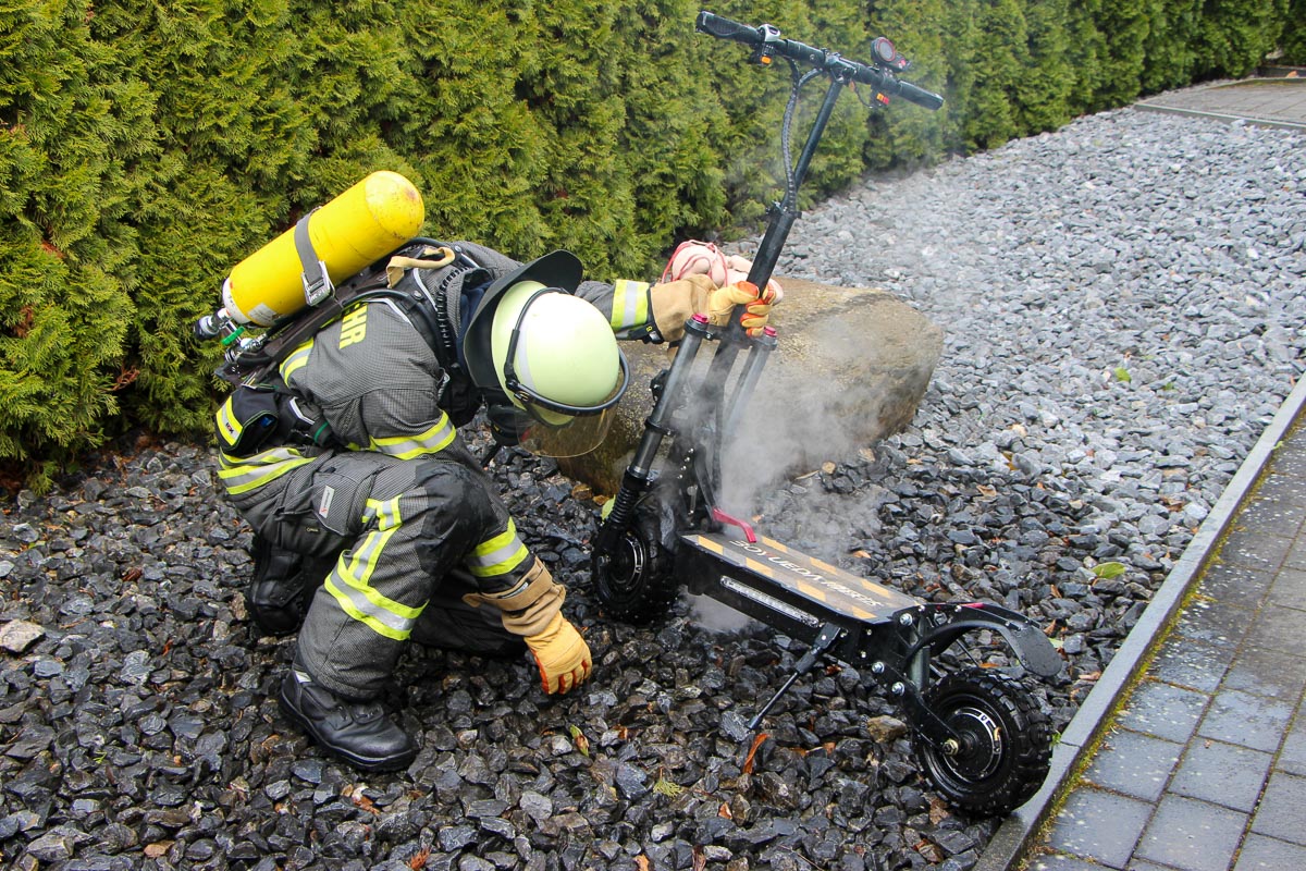 Problematisch war, dass innerhalb des Akkus eine erneute Hitzeentwicklung stattfand. Dadurch kam es weiter zu einer deutliche Rauchentwicklung. Um dieses Problem zu lösen, wurde eine Mülltonne mit Wasser geflutet und der E-Scooter in dieser versenkt. Durch diese Maßnahme konnte Wasser in das Akku-Paket eindringen und dieses dauerhaft kühlen.