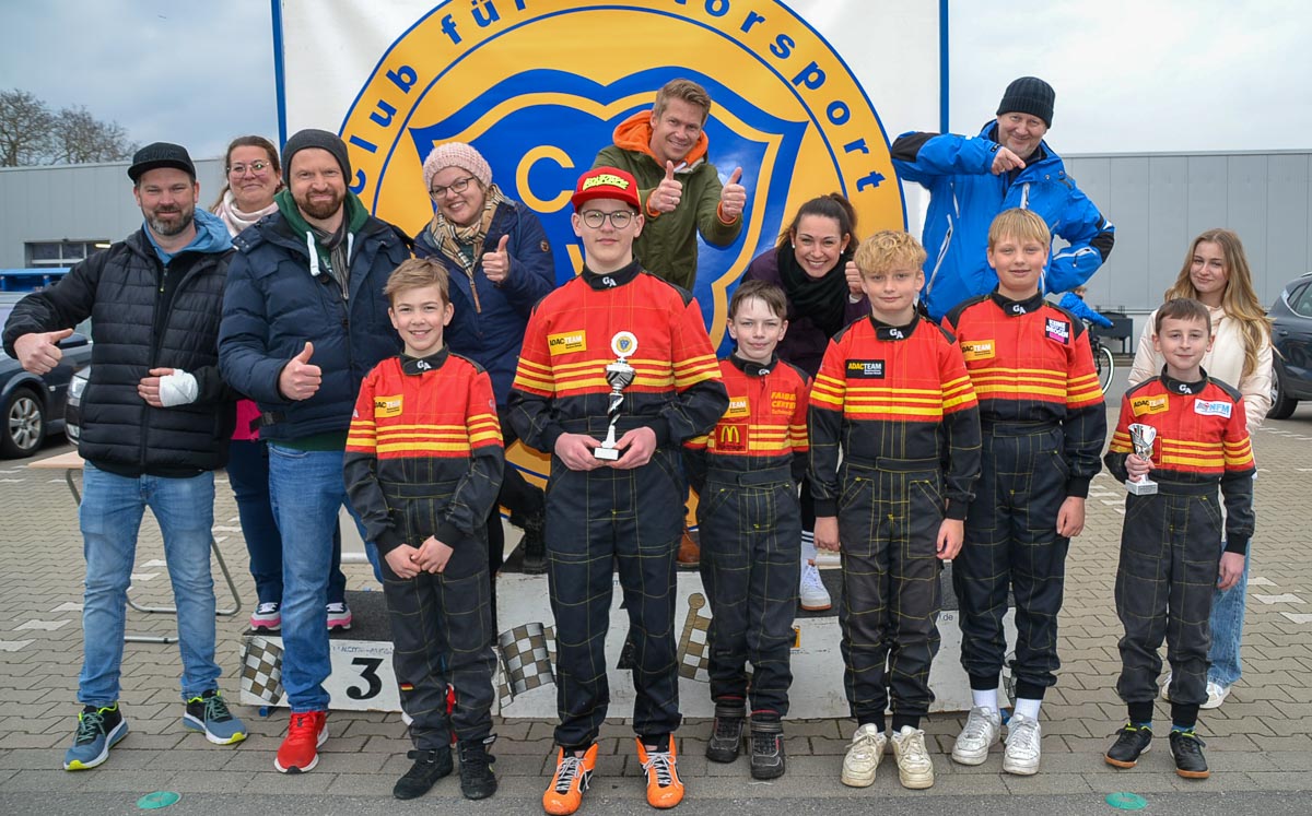 Bester Stadthäger der 20 Fahrer der K1 war mit Platz sieben Liam Zenker. „Das war sein erstes komplettes Rennen ohne Pylonenfehler, seit er Kart fährt,“ bemerkte Mutter Bianca. Joshua Liess kam auf Rang elf, Emily Metzler auf 16, dahinter auf 17 Fabian Suhr. Und jeder durfte mit einem silbernen Pokal seine Erfolgssammlung vergrößern.
