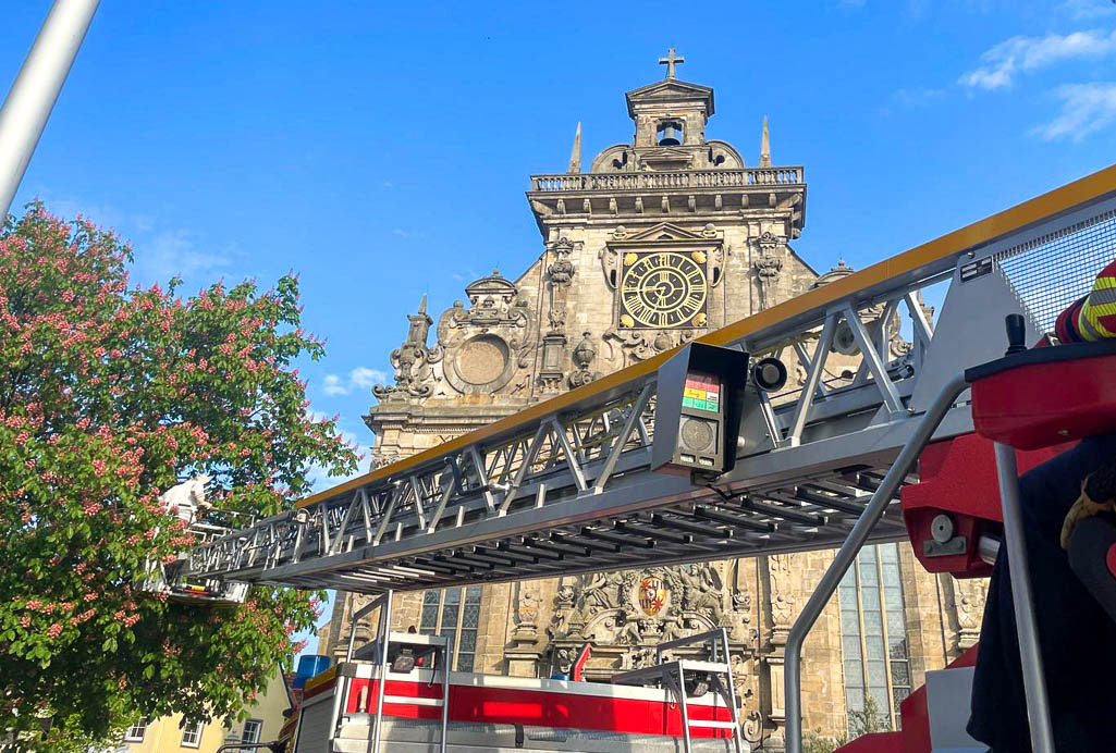 Da sich die Bienen in rund fünf Metern Höhe befanden und nicht ohne weiteres erreicht werden konnten, wurde die Feuerwehr alarmiert, die den Imker mit einem Drehleiterfahrzeug auf die nötige Arbeitshöhe hievte. Von dort konnten die Bienen dann in eine Transportbox umgesiedelt werden. (pr)