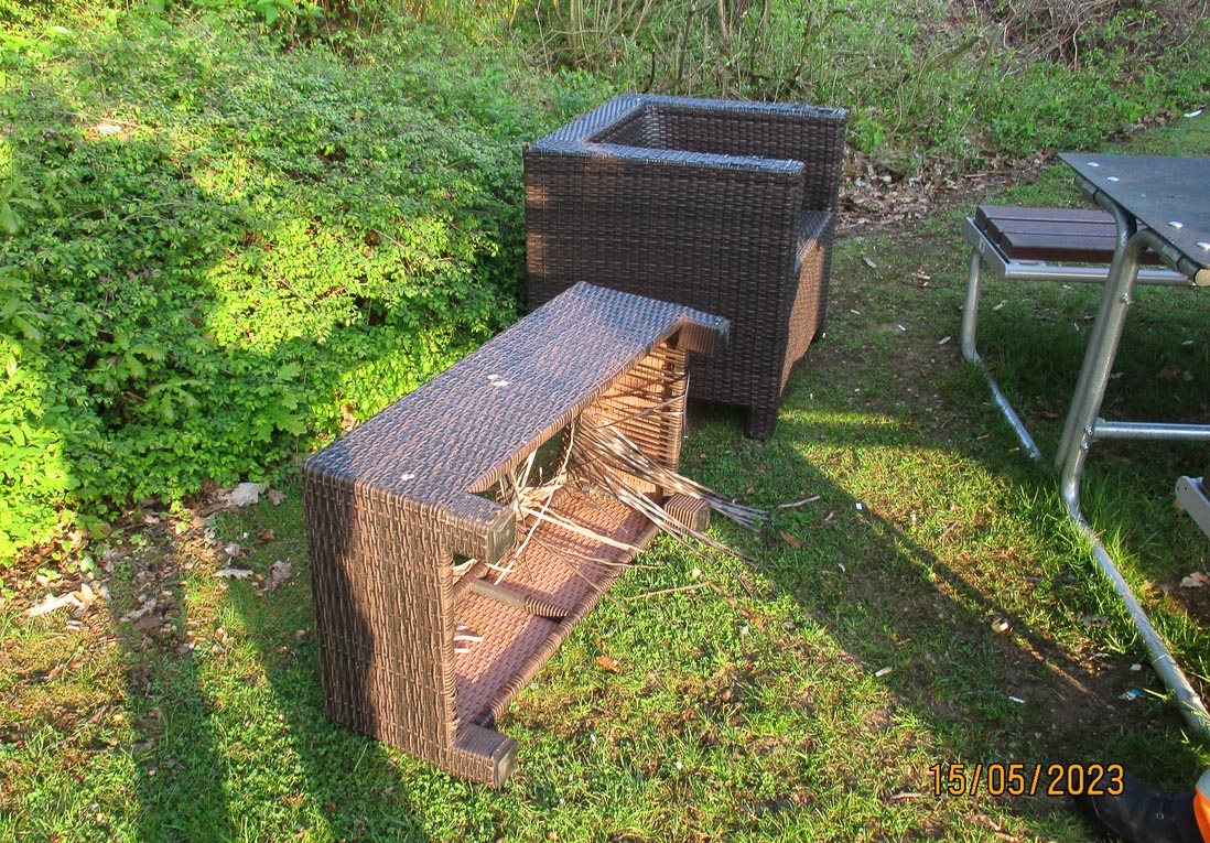 Möglicherweise sind die beschädigten Sitzmöbel über das vergangene Wochenende gestohlen worden oder wurden am Kammweg entsorgt.