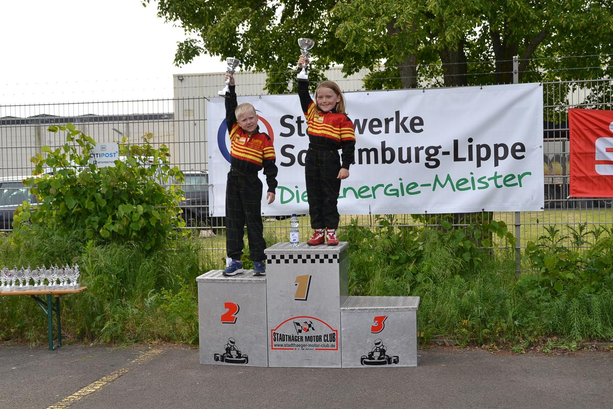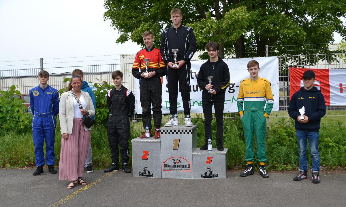Mit einem Platz zwei für Timo Greth in der K5 begann der Tag gleich sehr positiv. Die acht Starter bekamen bei der Siegerehrung den Pokal von CDU-Landtagsabgeordneten Colette Thiemann überreicht, die der Einladung des Stadthäger Motor Clubs e. V im ADAC gern nachgekommen war und sich beeindruckt über die Leistung der Fahrer zeigte.