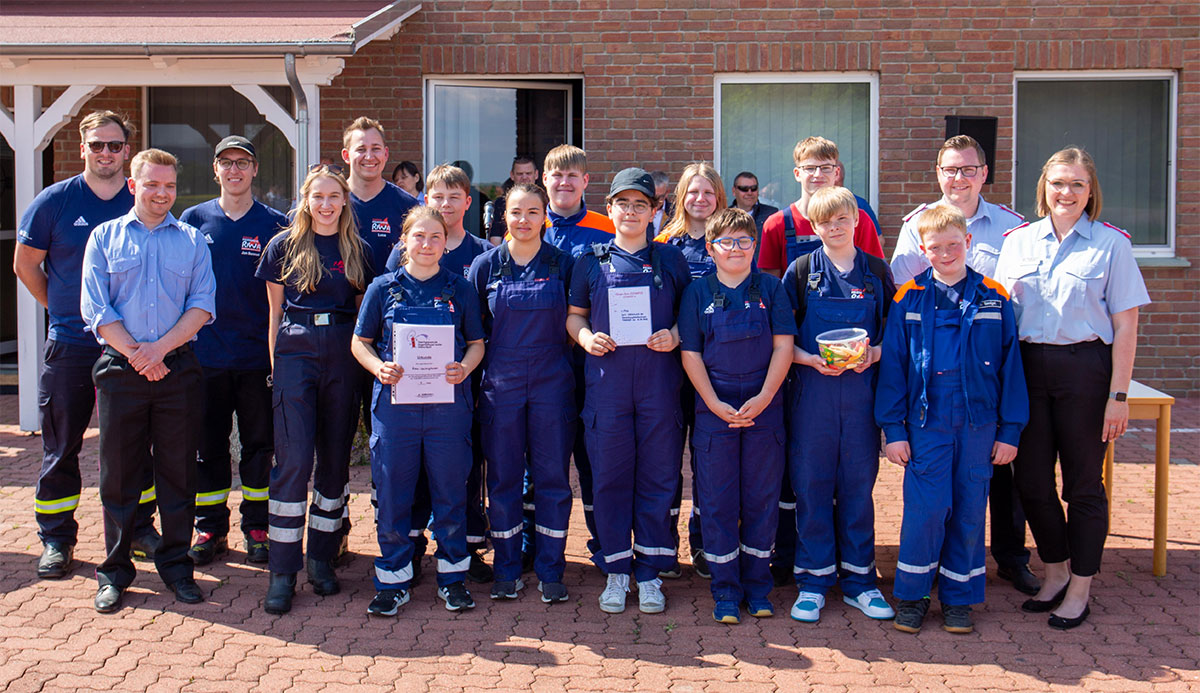 Als um 15.30 Uhr Anna Sebode, die Gemeindejugendfeuerwehrwartin, sowie ihre Stellvertreter Jan Schmöe und Tim Wolter zur Siegerehrung baten, war die Spannung auf den Siedepunkt. Die anwesende Kreisjugendfeuerwehrwartin Silke Weibels lobte die Jugendlichen; das sie sich den Bedingungen des Wettbewerbes gestellt hatten. Diese Wettbewerbe seien eine gute Vorbereitung, auf das künftige Leben des Feuerwehrmanns/Frau fügte Gemeindebrandmeister Dirk Pörtner bei seinem Grußwort hinzu.