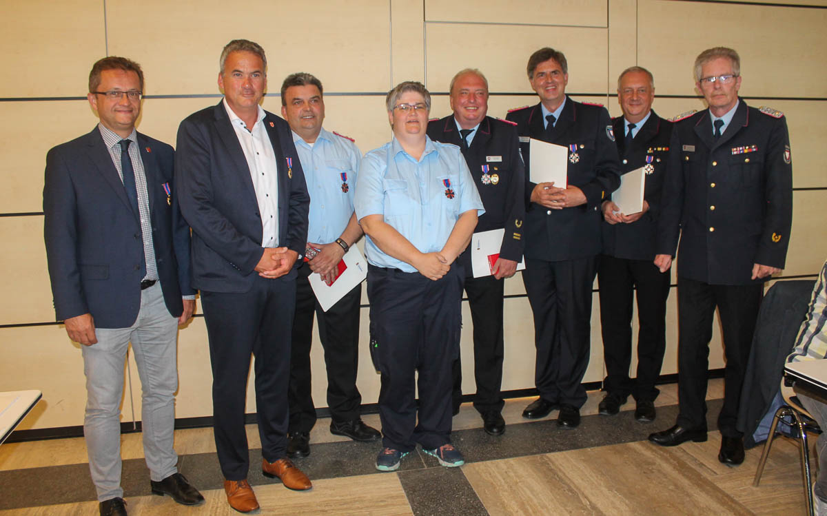 Für Ihr hohes Engagement in der Feuerwehr wurden Mitglieder der Feuerwehren mit dem Deutschen Feuerwehr-Ehrenkreuz in Bronze bzw. Silber ausgezeichnet. Das Deutsche Feuerwehr-Ehrenkreuz in Bronze erhielten Lena Nerge (Leiterin vom Team Presse der Kreisfeuerwehr) und Gregor Zimmermann (Gemeindebrandmeister der SG Niedernwöhren).