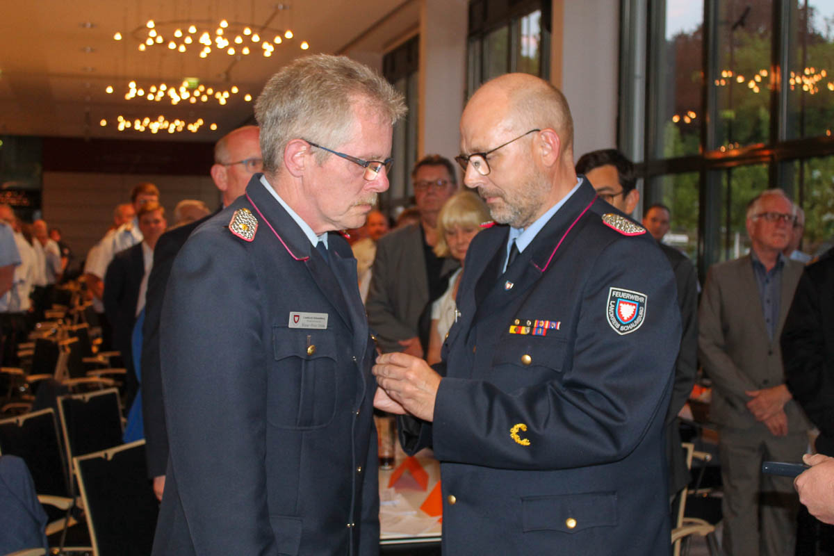 Während der Versammlung erhielten Jörn Wedemeier (SG-Bürgermeister Sachsenhagen) und Mike Schmidt (SG-Bürgermeister Bad Nenndorf) die deutsche Feuerwehr-Ehrenmedaille.