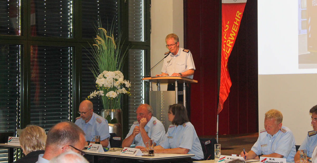 Michael Möller als Abschnittsleiter Süd stellte danach die Berichte aus den Bereichen technische Einsatzleitung, Fernmeldezug, Fachbereich Höhenrettung, Kreisfeuerwehrbereitschaften Nord und Süd, FeuerOn und Leistungsvergleiche vor. Kreis-Jugendfeuerwehrwartin Silke Weibels verlass den Bericht für die Kreisjugendfeuerwehr.
