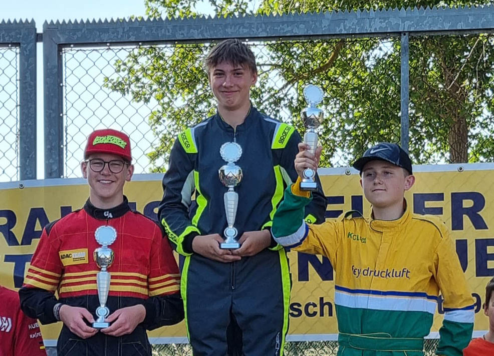 Sieger der K2 war Marlo Leander Schulz, Bruder Nevio Ilias kam in der K3 später auf Platz zwei. Für Familie Schulz also ein sehr lohnender Tag, aber aus unerfindlichen Gründen gab es bei den Jungen in Oschersleben schon immer gute Ergebnisse. Die Heimreise nach diesem rennreichen Wochenende konnte mit weiteren Pokalen und einem guten Gefühl angetreten werden. Jannick Battermann, ebenfalls SMC-Fahrer in der K2, kam auf Rang elf. Seine Runden waren ohne Fehler, aber er war etwas gebremst unterwegs.