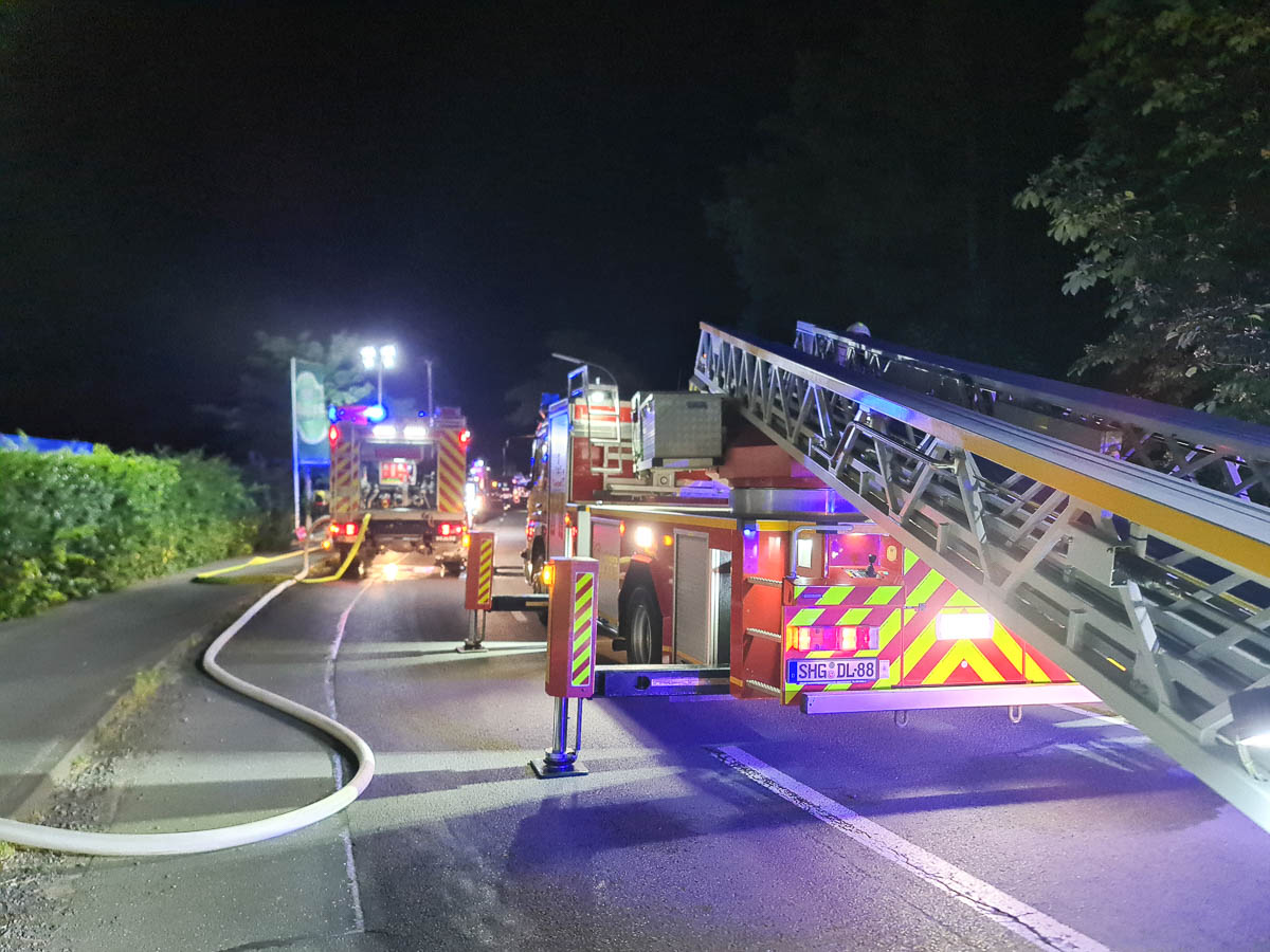 Die rund 85 Brandbekämpfer waren bis 4:00 Uhr morgens im Einsatz. Von Seiten der Polizei wird jetzt ermittelt, was Ursache für das Feuer gewesen ist. Ersten Angaben zufolge gebe es bisher jedoch keine konkreten Hinweise auf eine fahrlässige oder vorsätzliche Brandlegung. Der Schaden ist enorm und dürfte nach ersten Schätzungen um die 200.000 Euro betragen. (vu; Fotos: Feuerwehr)