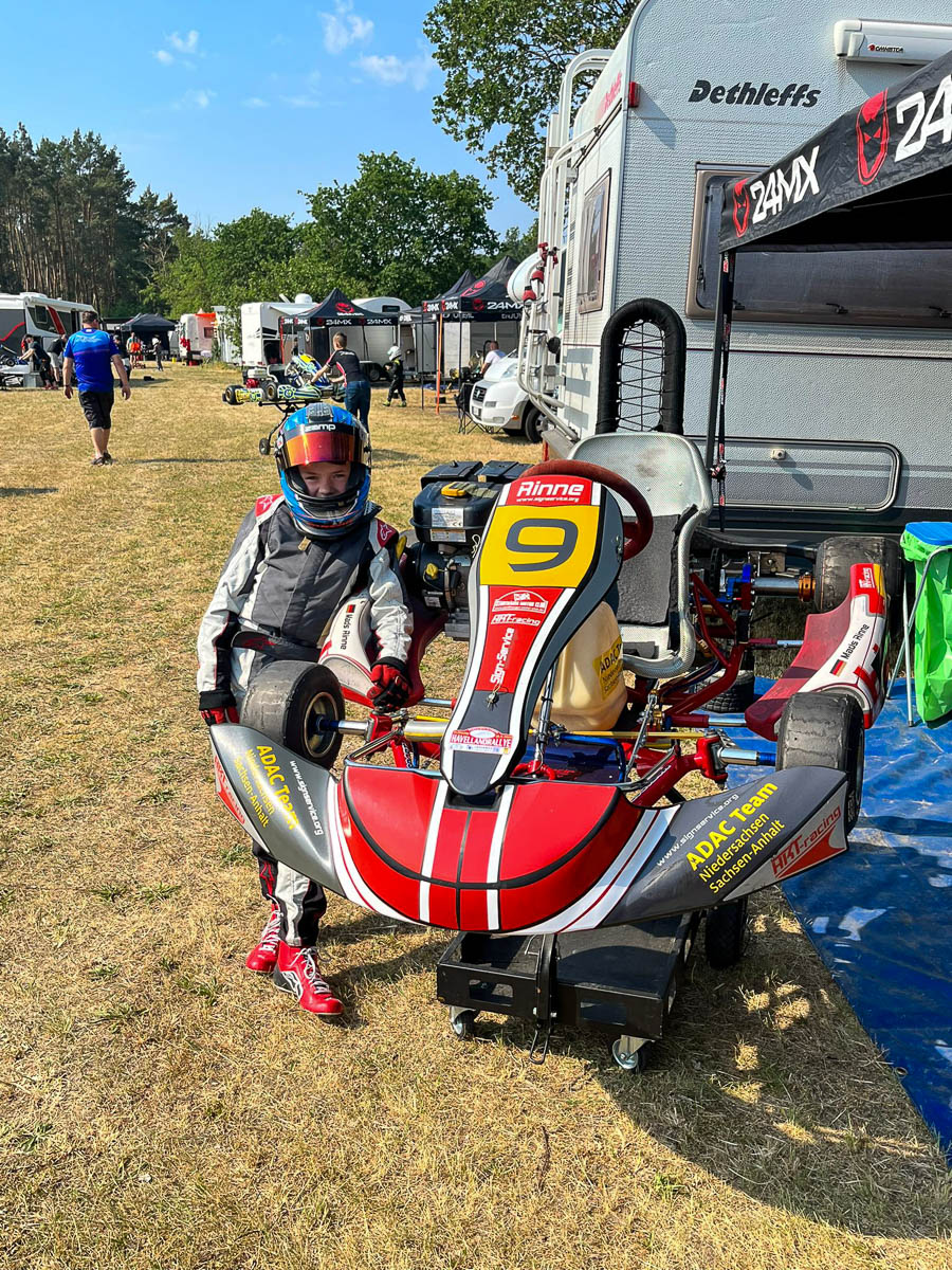 Mutter Bianca Zenker ist natürlich froh, dass ihr Sohn keine gesundheitlichen Schäden hat und weiß, dass Unfälle passieren können. Aber trotzdem ist sie traurig, dass so viel Arbeitszeit ihrer Männer so schnell kaputt gemacht wurde. Und auch der finanzielle Neuaufbau ist nicht unerheblich. Aber auch für Jamie wäre es kein Grund, der Rundstrecke den Rücken zu kehren. Der Junge, der in das Kart gefahren ist, wurde verwarnt und die Angelegenheit wurde an das Schiedsgericht weitergegeben. Endplatzierung der ersten Veranstaltung in Klasse A war für Jamie Platz zehn und für Mads ein guter fünfter Rang.