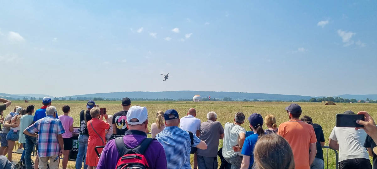 Zahlreiche Exponate von Land- und Luftfahrzeugen sind zu sehen, daneben finden umfangreiche Flugshows und Vorführungen am Himmel über Bückeburg statt.