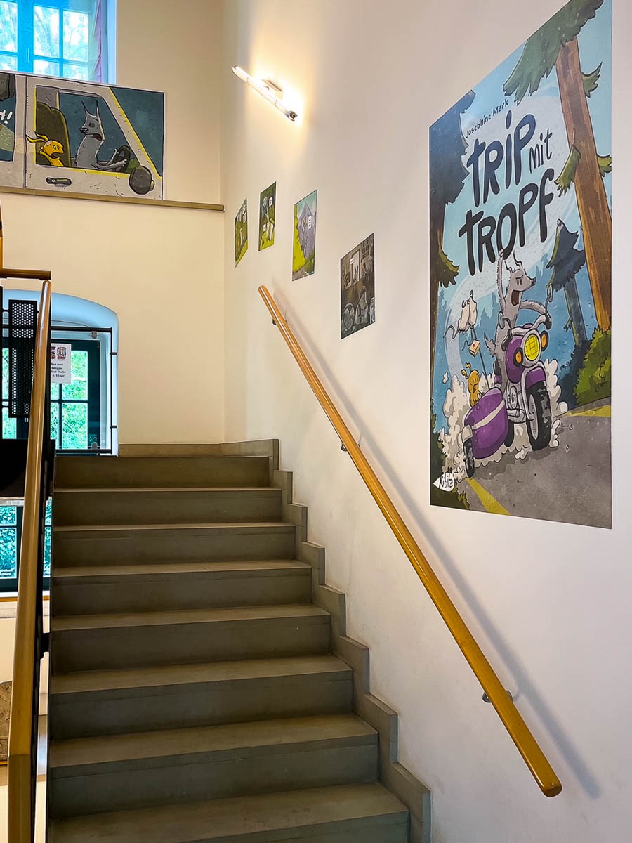 Aus diesem Anlass hat Darjush Davar (Kurator „Die besten deutschen Comics“) auf den allen drei Etagen der Bücherei eine Ausstellung installiert, die neugierig macht und alle Facetten der vielseitigen Künstlerin abbildet.