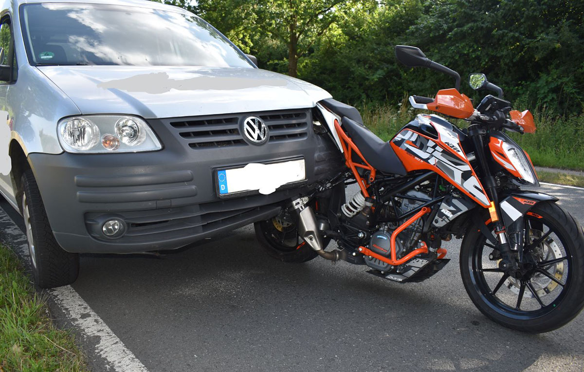 Zeitgleich kam aus Richtung Ahnsen ein 69jähriger Mindener mit einem VW Caddy, der nach dem Durchfahren einer Rechtskurve auf das Krad auffuhr, das sich unter der Fahrzeugfront des PKW verkeilte und ca. 100 Meter mitgeschleift wurde.
