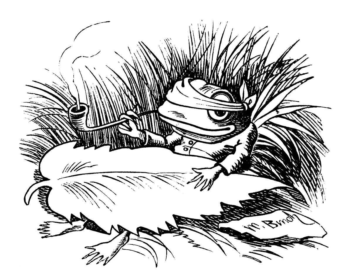 Die beiden Enten und der Frosch. Münchner Bilderbogen Nr. 325, 1862 „Drei Wochen war der Frosch so krank! Jetzt raucht der wieder. Gott sei Dank!“
