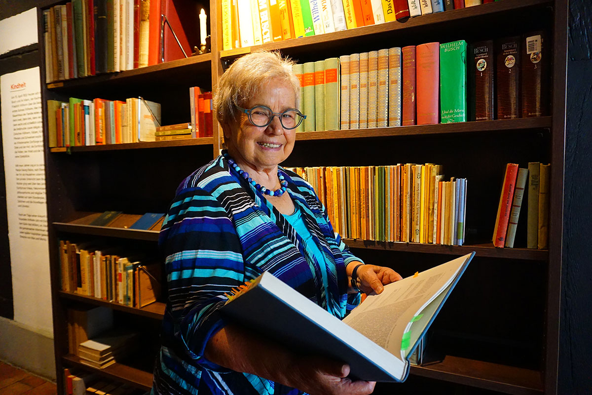 Die seit vielen Jahren ehrenamtliche Mitarbeiterin, Frieda Höltke, zeigt besondere Begabung in dem bewegten Vortrag der Gedichte des Künstlers. „Wertvoll für alle Busch-Liebhaber und solche die es werden möchten“, formuliert sie.