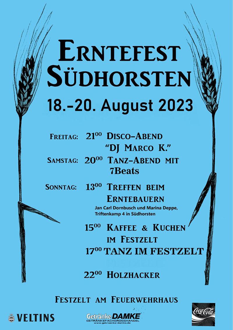 (Südhorsten) In Südhorsten findet das Erntefest vom 18. bis 20. August 2023 statt.