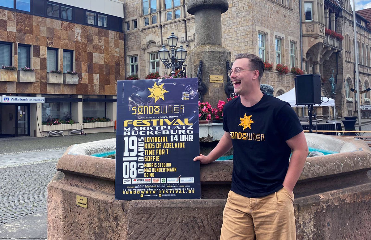 Ein unvergessliches Event in der Sommersonne – mit 4 Bands und 3 DJs aus ganz Europa – verbinden sich mit der außergewöhnlichen Atmosphäre des Marktplatzes Bückeburg, vor und hinter dem großen Schlosstor. Inzeniert wird das Sundowner Festival durch Louis Moses und Axel Postulart.