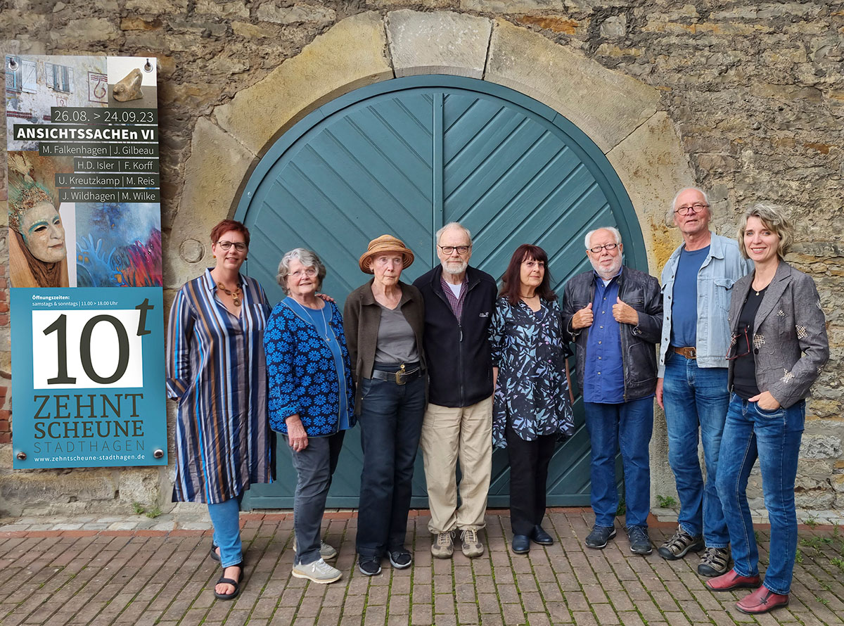(Stadthagen) Der Freundeskreis Zehntscheune lädt ein zur 4. Kunst-Ausstellung der Saison 2023. Die Vernissage zu den ANSICHTSSACHEn VI findet am Freitag, 25. August, um 18 Uhr statt. 10 Jahre nach der ersten Ausstellung stellt die Künstler-Gruppe mit Beteiligten aus Stadthagen und dem Schaumburger Land ihre Kunstwerke wieder gemeinsam im Schlossviertel vor: Malerei, Zeichnungen, Collagen, Skulpturen, Plastiken, Glaskunst, Objekte. So sind Werke von Marga Falkenhagen, Janine Gilbeau, Hans-Dieter Isler, Frieder Korff, Uwe Kreutzkamp, Martina Reis, Jutta Wildhagen und Marion Wilke zu erleben.