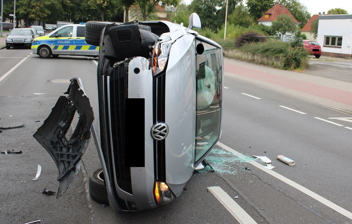 Dessen Auto kippte in der Folge auf die Seite. Beide Fahrzeugführer erlitten leichte Verletzungen und wurden vor Ort durch eine Rettungswagenbesatzung erstversorgt. Sie wollten sich später selber in ärztliche Behandlung begeben.