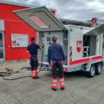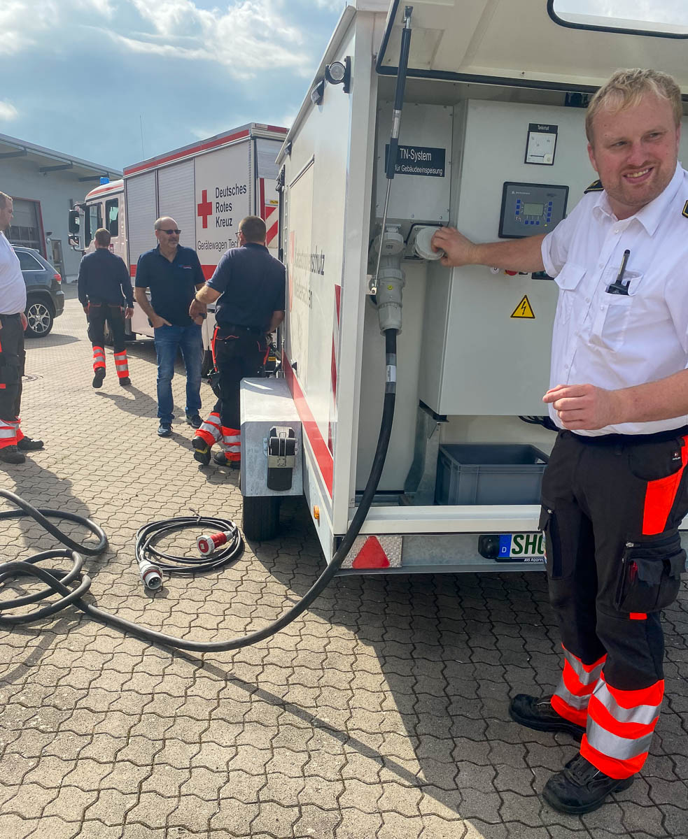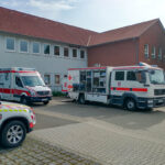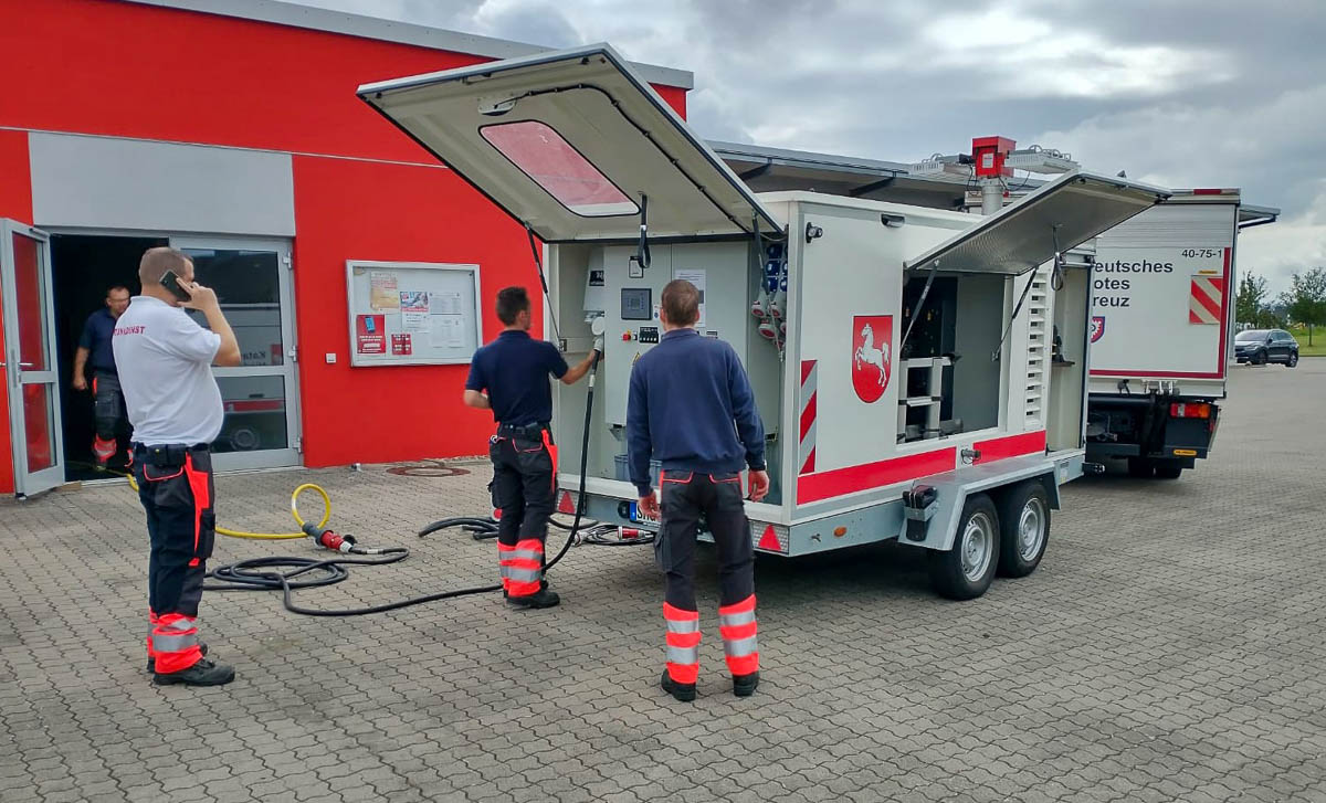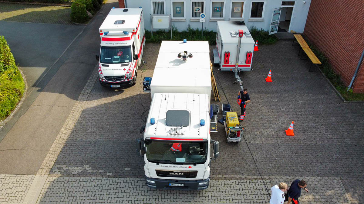 20 Mitglieder der DRK-Kreisbereitschaft rückten aus mit ihrem Kreisbereitschaftsleiter und Katastrophenschutzbeauftragten Philip Tölke, sieben Katastrophenschutzfahrzeugen und drei Anhängen, darunter der Einsatzleitwagen, der Gerätewagen Technik, die Feldküche und dem größten Stromgenerator im Landkreis zu einer groß angelegten Übung in der Samtgemeinde Niedernwöhren.