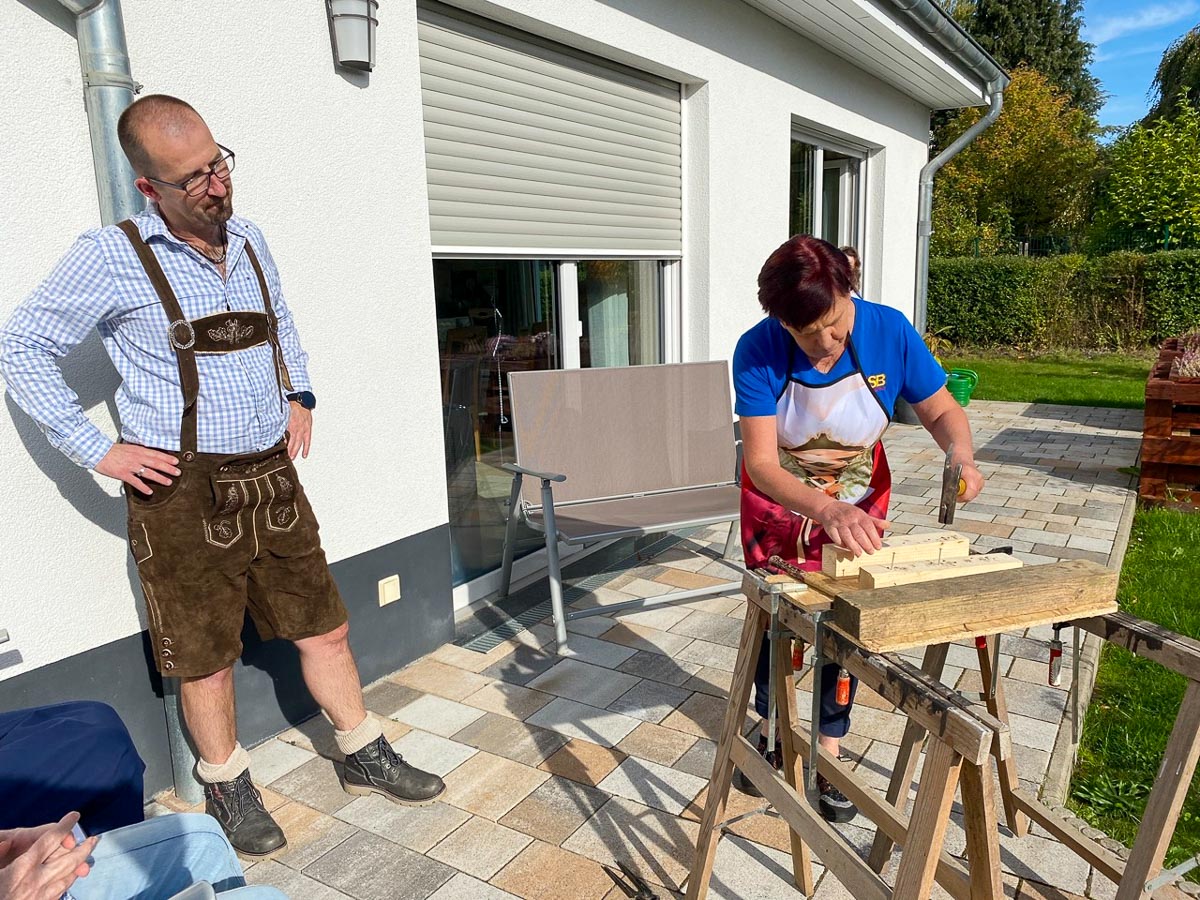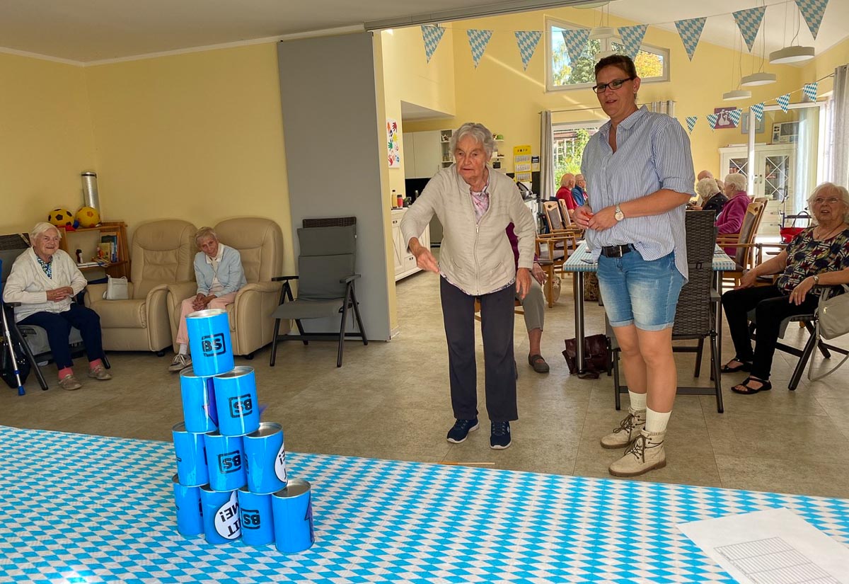 Schon am Vormittag begann das lustige Treiben mit fröhlicher Musik und vielen Spielen. So versuchten sich die Gäste im Dosen werfen, Nagel hämmern und Säckchen werfen und erhielten zur Belohnung eine Teilnahmeurkunde. Stärken konnten sie sich beim traditionellen Essen mit Sauerkraut und Braten sowie herzhaften Brezeln. Und natürlich fehlte auch die (alkoholfreie) Maß Bier nicht.