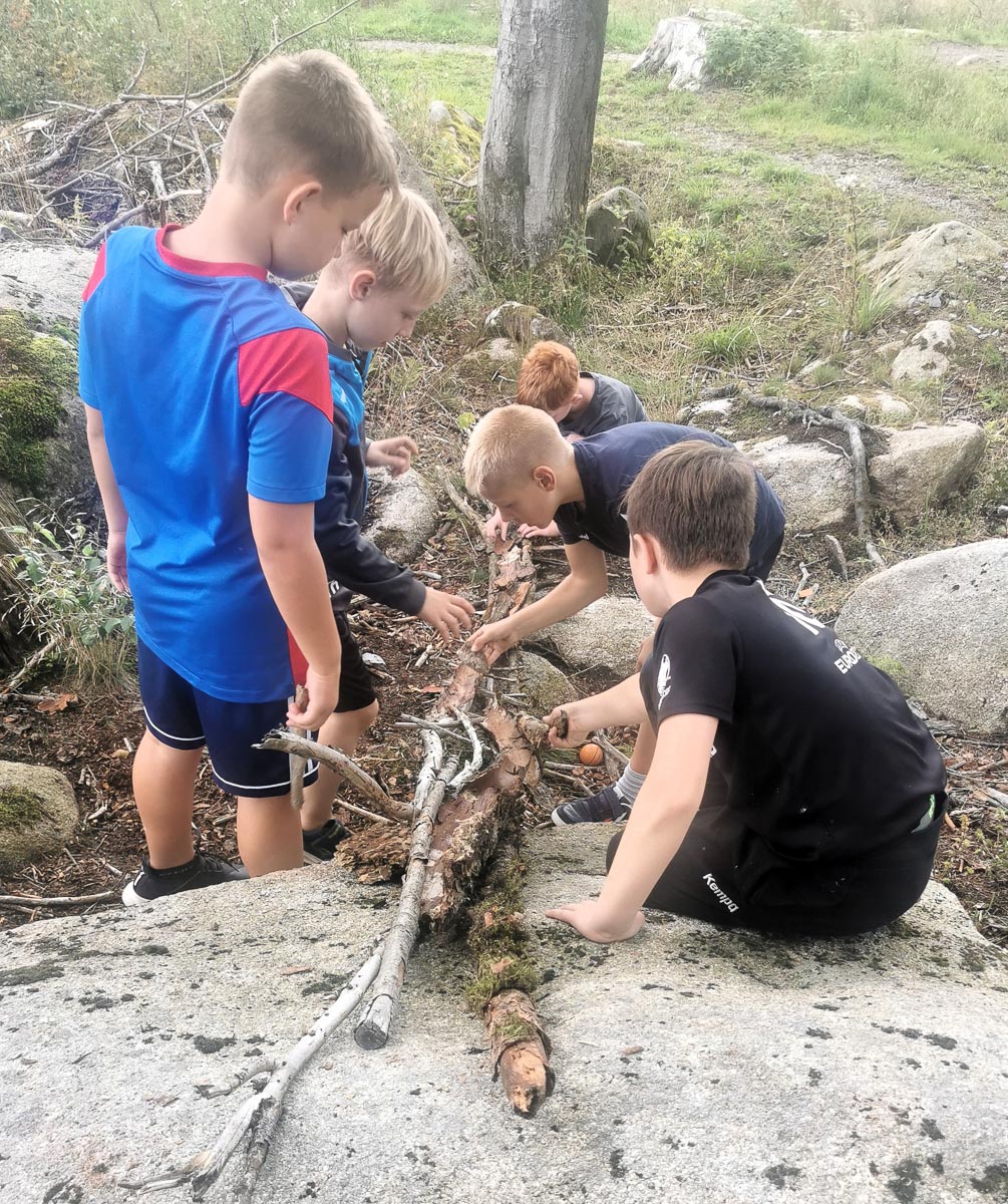 In der Zwischenzeit war die E-Jugend ins Rollen gekommen. Auf Harzer Granitfelsen galt es, mit den Gaben der Natur in 20 Minuten eine Murmelbahn zu formen. Die Sieger Dushan, Felix, Levin, Linus und Tim jubelten, als ihr Tennisball sanft an der Zielbande aus Harzer Totholz anschlug.
