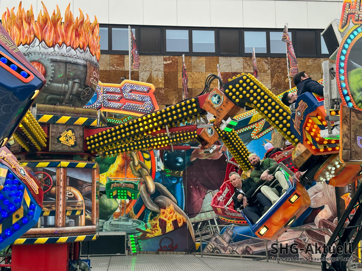 Vor dem Stadthaus lädt das Karussell „Shaker“ zur Rundfahrt ein. Bei aktueller Musik und flotten Sprüchen kommt der Spaßfaktor hier bestimmt nicht zu kurz.