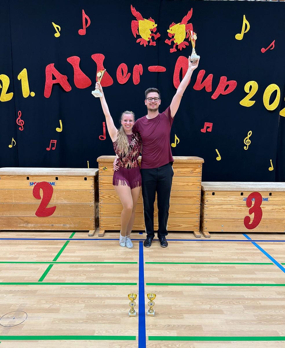 Auch in der anspruchsvolleren Turnierklasse konnte der TSC punkten, denn das Trainerpaar Marcine Cyrys und Leon Schöller wurde Landesmeister Niedersachsen der C-Klasse.