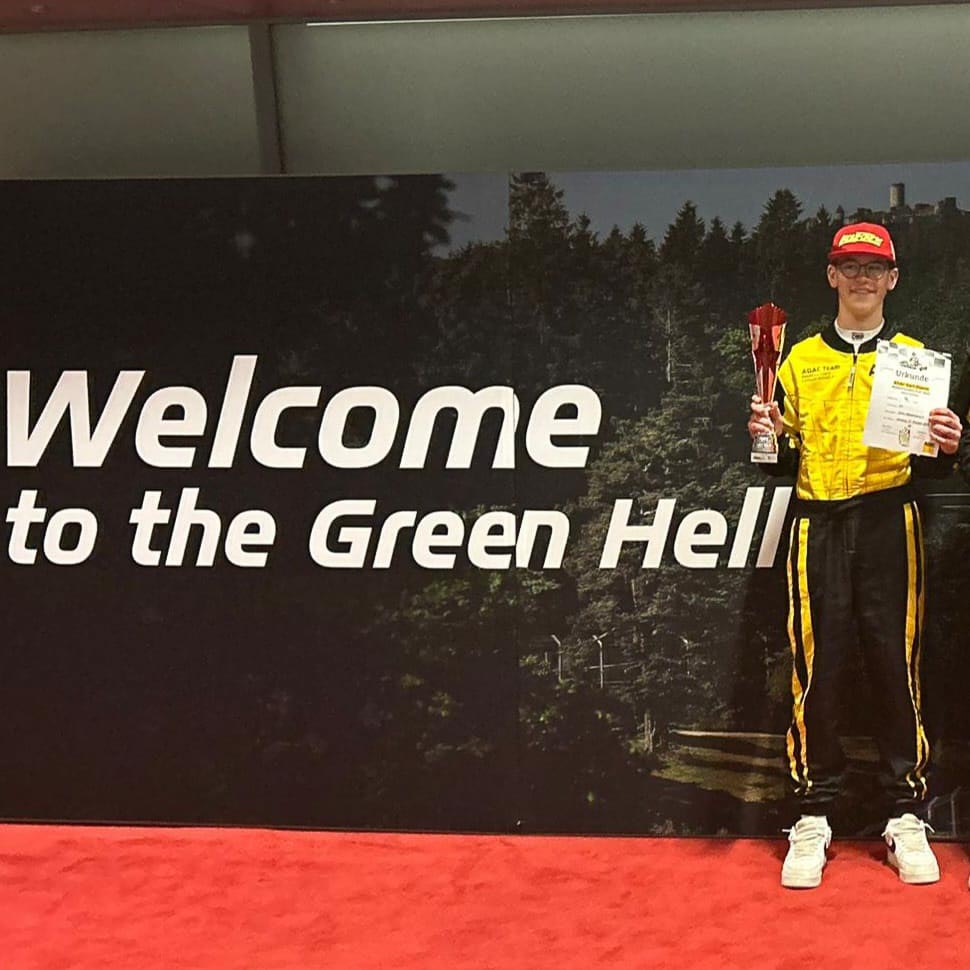 Für den Start beim Bundesendlauf, der im historischen Fahrerlager am Nürburgring ausgetragen wurde, gab es noch einige private Trainingsrunden. Für den 13-jährigen Fahrer vom Stadthäger Motor Club e. V. im ADAC war klar, dass die Konkurrenz dort noch stärker war und die Teilnehmer wirklich zu den Besten Deutschlands gehören. Sein eigenes Ziel war die Top 15 von den 51 Startern. „Das war realistisch, wenn Nevio die Nerven behält und zwei fehlerfreie Runden fährt“, sagte Mutter Irina.
