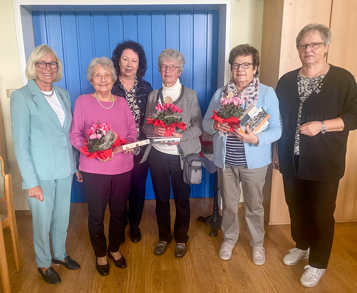 Ursula Weber, Elke Klos und Ulrike Koller nahmen dann die Ehrung von drei langjährigen Mitgliedern vor, und zwar für 25-jährige Mitgliedschaft Monika Lockemann, für 50-jährige Mitgliedschaft Renate Knapp und ebenfalls für 50-jährige Mitgliedschaft Hilde Tölke.