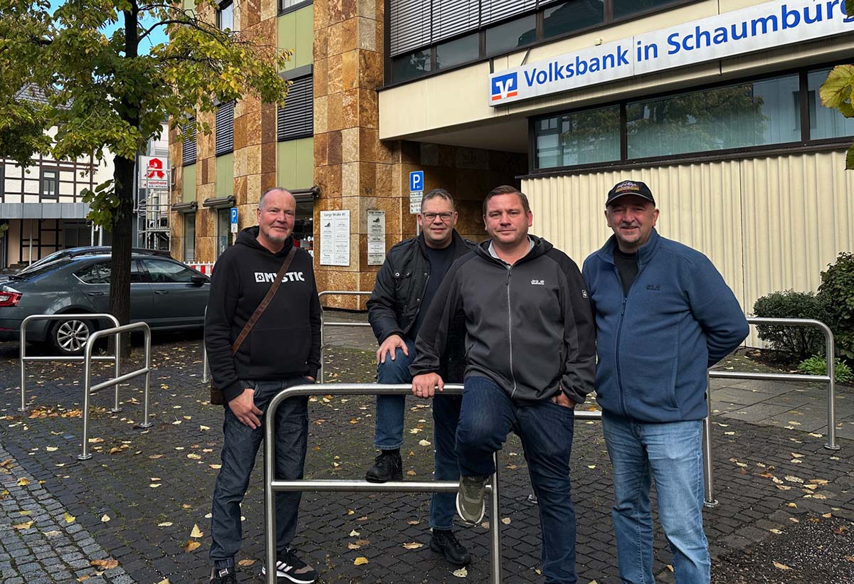 Jetzt haben beide einen Antrag gestellt, die Anzahl der Fahrradabstellbügel im Bereich der Volksbank von 15 auf 3 zu reduzieren und entsprechend des Konzeptes der Stadt Bückeburg bei Rossmann die Anzahl auf sechs zu erhöhen und alternativ im Bereich des TEDI/Kochlöffel, sechs Bodenhülsen einzuarbeiten, um hier die Fahrradbügel zu installieren.