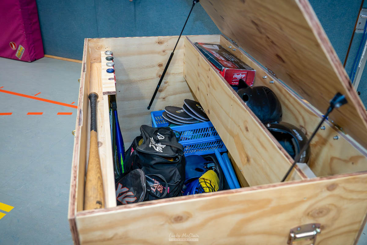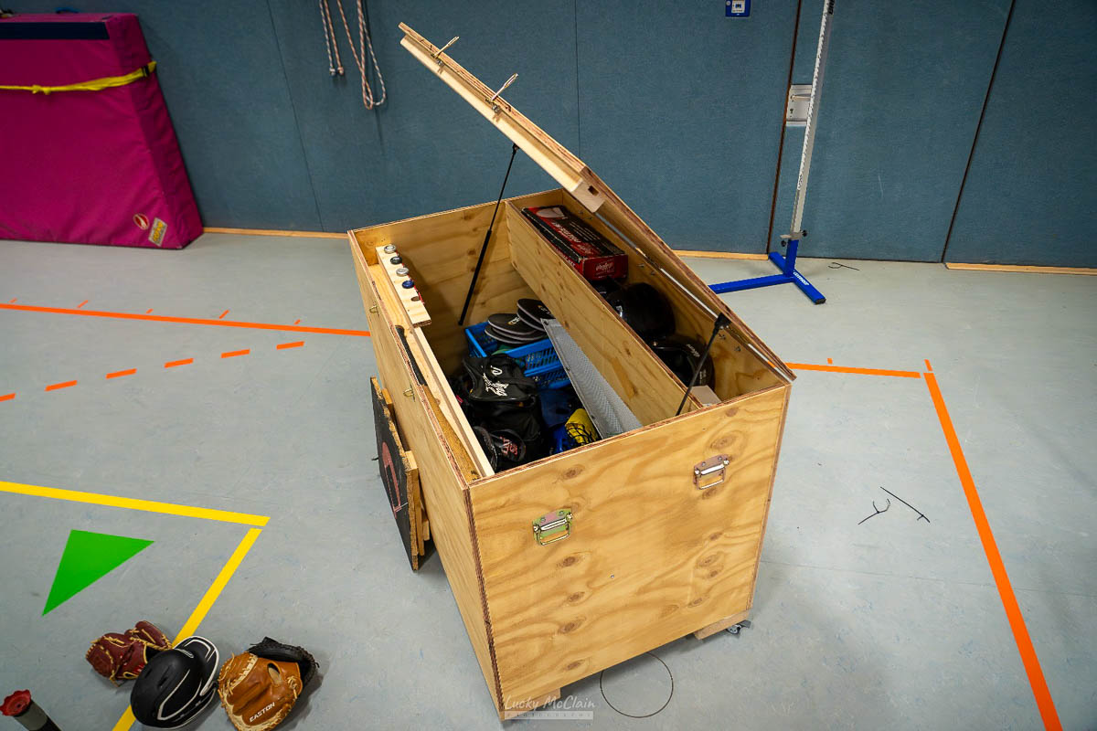 Auch Benjamin Vaartmann, im Bild links an der Kiste, freut sich über die Vielzahl an Möglichkeiten: „Baseball ist ein stark technisch basierter Sport. Bei der Fülle des über die Jahre angesammelten Equipments habe ich die freie Auswahl. Ich kann einfach zugreifen und ganz ohne Organisationsstress trainieren.“ Auch Paul, dessen Vater mit ihm die Kiste gebaut hat, freut sich auf das bevorstehende Hallentraining und die Winterhallenserie der Jugend mit fünf Turnieren von Dezember bis März. (pr/Fotos: pr)