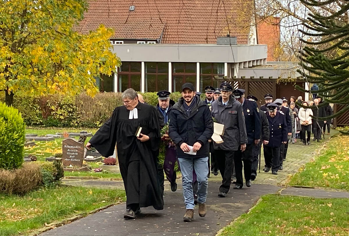(Wendthagen-Ehlen) Wie seit 1956 üblich, wurden auch am diesjährigen Volkstrauertag wieder drei Kränze am Ehrenmal uf dem Friedhof der Rogatekirche zu Wendthagen feierlich niedergelegt.