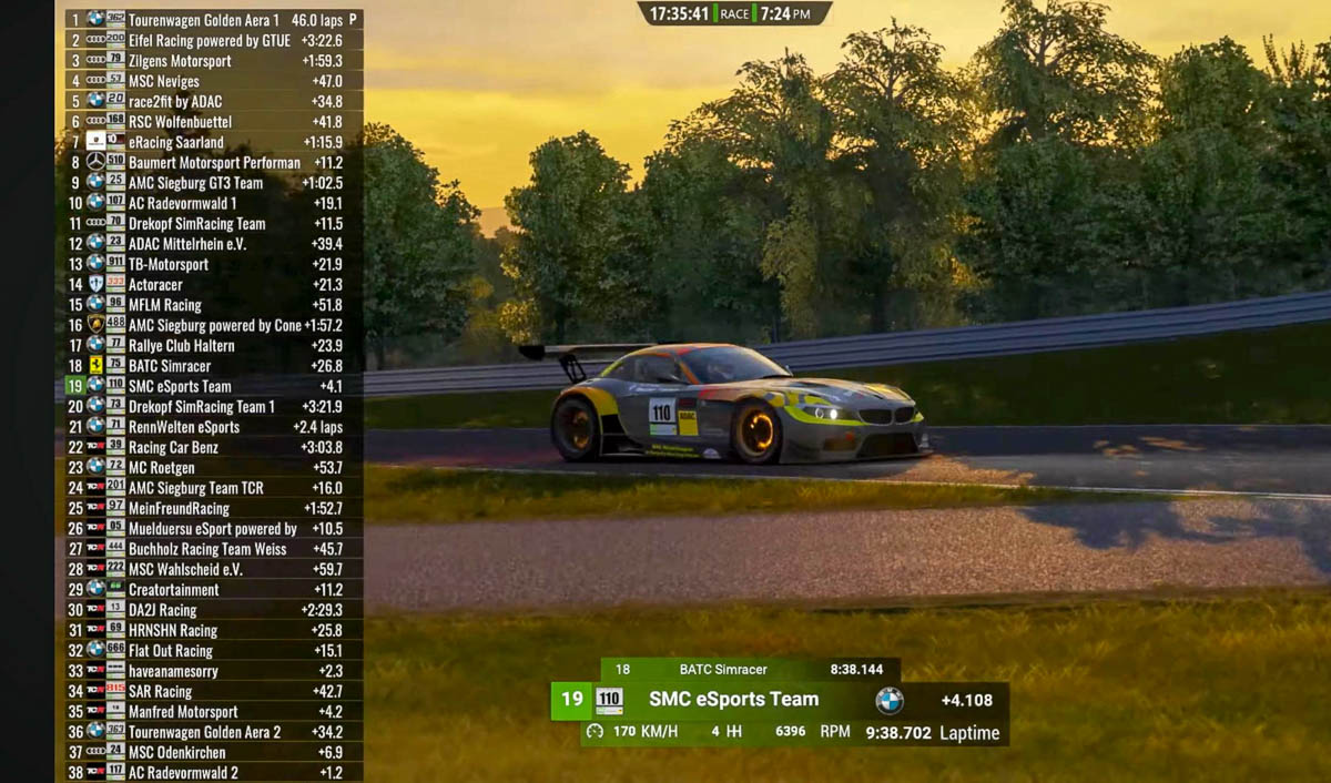 Auch stand bei dem SMC eSports Team schnell fest, dass es als Fahrzeug ein BWM Z4 in der GT3 Klasse werden soll, da dieser sich auf der Nürburgring Nordschleife am besten fahren lässt. Wie auch im Digital Cup wurde in der Simulation Assetto Corsa gefahren. Das Stadthäger BMW Autohaus Becker-Tiemann zeigte sich auch von dem digitalen Event begeistert und stattete die Stadthäger Mannschaft mit flotten Poloshirts zum Rennen aus. SMC-Mitglied Sascha Rinne entwickelte ein schickes Design für den digitalen BMW. Carsten Beyer, Vater von Fahrer Nico, holte seinen Wohnwagen mit Grill wieder aus dem Winterschlaf und das Wochenende konnte starten.