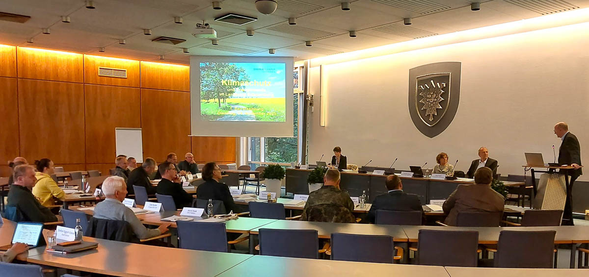 Geschäftsführer Horst Roch hatte gemeinsam mit der Beiratsvorsitzenden Cornelia Laasch (Bündnis 90/Die Grünen) die künftigen Beiratsmitglieder ins Kreishaus geladen. Zu Beginn beschrieb Landrat Jörg Farr in seinem Grußwort die Entwicklung des Klimaschutzes im Landkreis und verdeutlichte die Wichtigkeit dieses Gremiums.