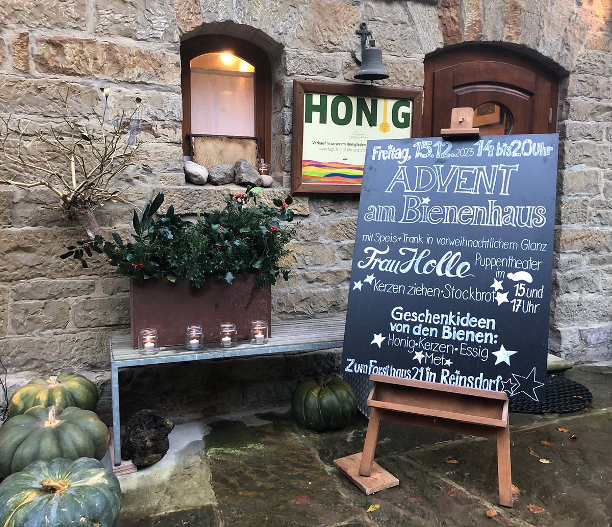 (Apelern) Die Honigbienen haben sich in ihre Winterruhe verzogen. Der Honig, den sie im Sommer eingetragen haben, hält sie warm. Die Natur scheint zu träumen. Diese besondere Stimmung am Forsthaus der Schaumburger Waldimkerei und am Bienenhaus (Zum Forsthaus 21, Reinsdorf) zu erleben, kann für die Besucher zu einer besonderen Bereicherung in der Adventszeit werden.