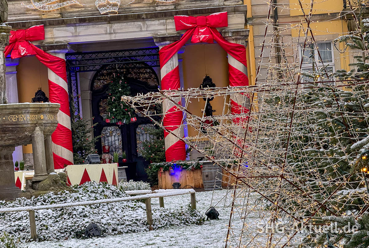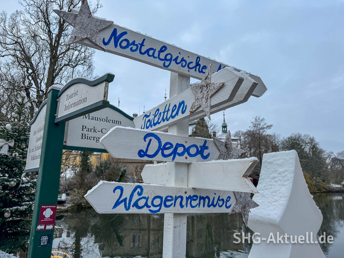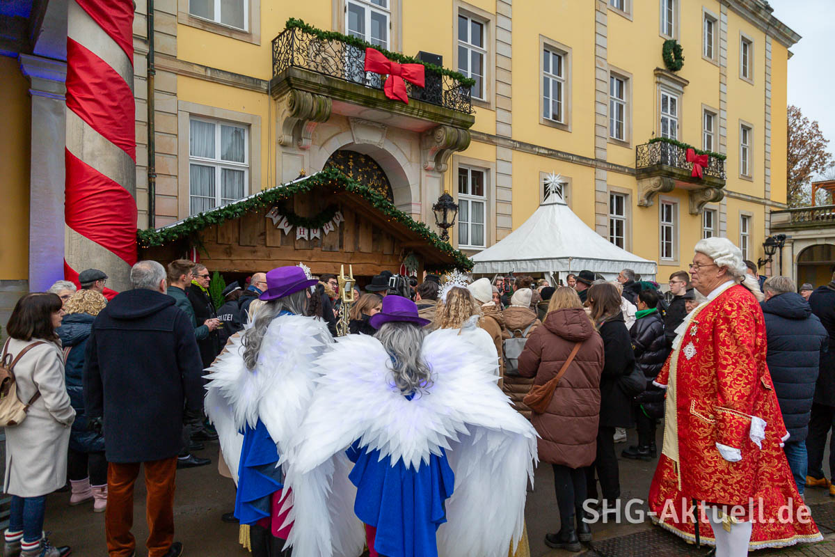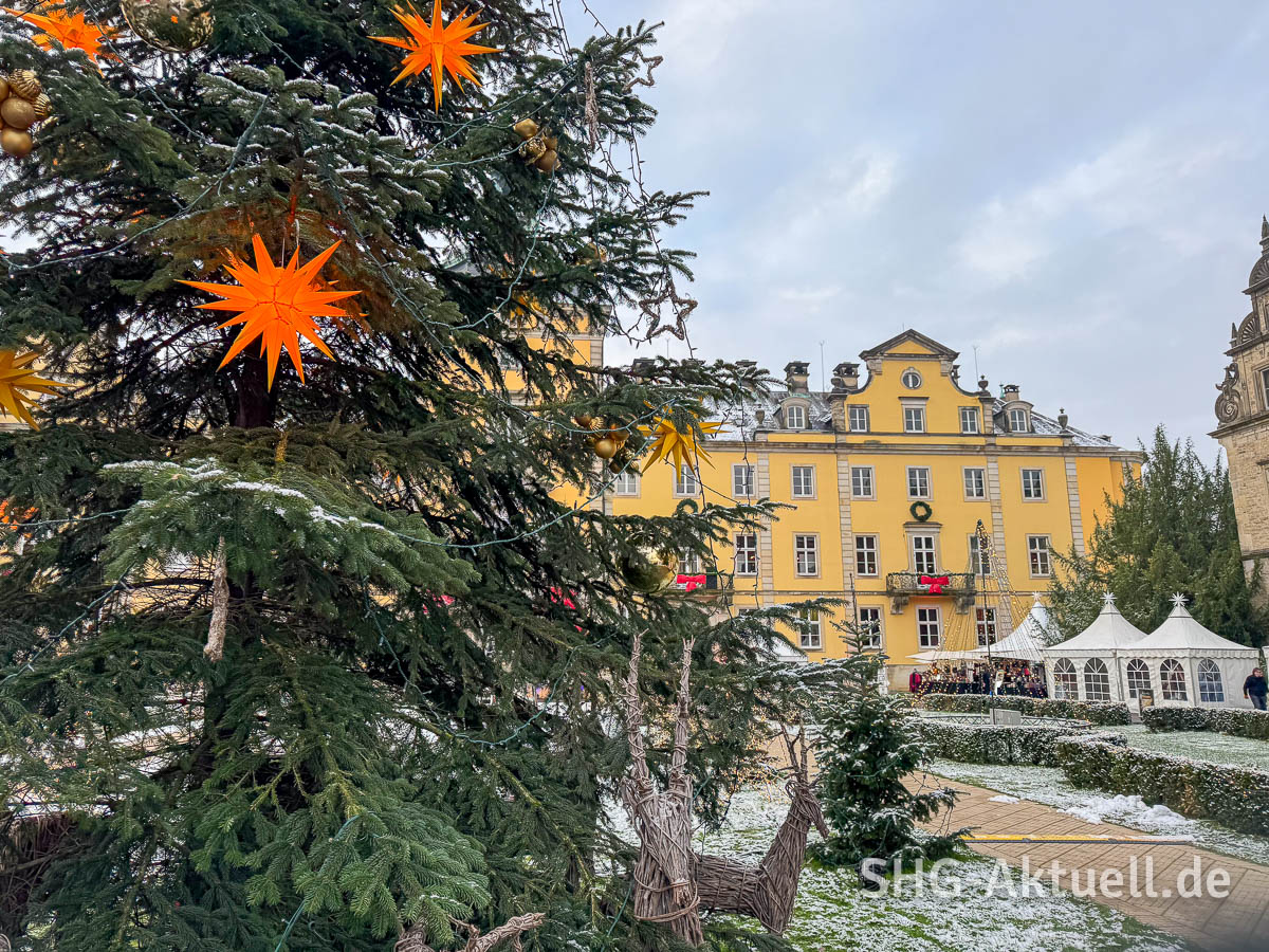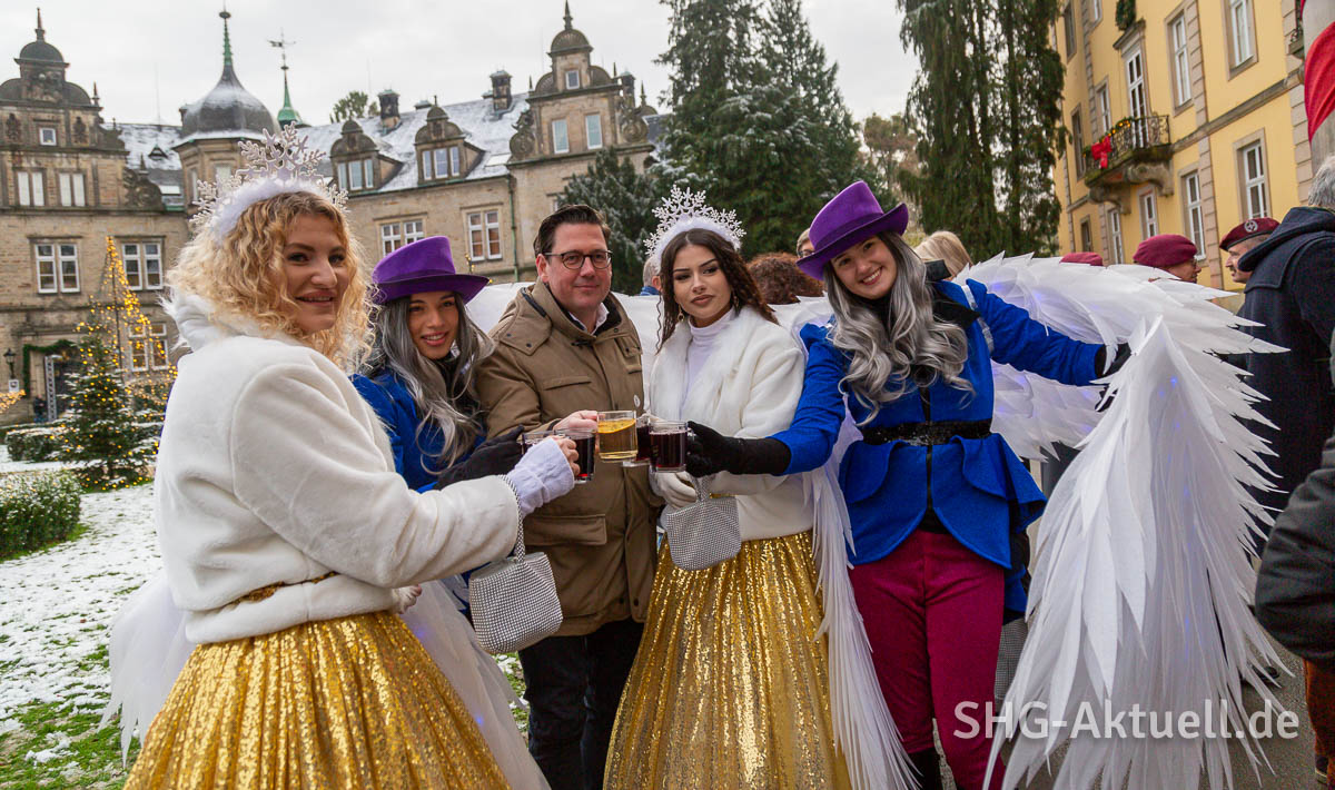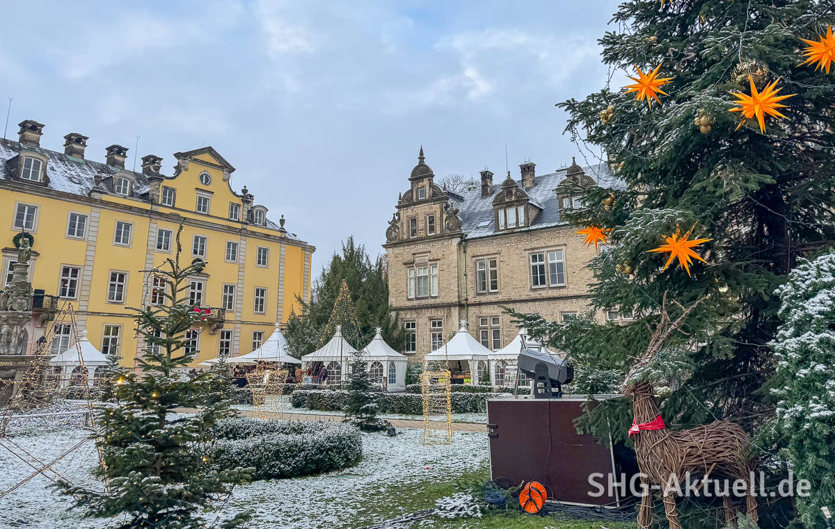 Der runde Geburtstag der überregional beliebten Großveranstaltung steht unter dem Motto „Der Weihnacht heller Lichterglanz“ und ganz in diesem Sinne erstrahlt auch das Gelände samt Schlosspark in weihnachtlicher Dekoration, mit Figuren, Weihnachtsschmuck und festlicher Beleuchtung, die mit Einsetzen der Dunkelheit so richtig zur Geltung kommt – darum empfahl der Schlossherr, bis zum Abend zu bleiben. Und noch eine Überraschung gab es zum Auftakt: Das Schloss und die Umgebung präsentieren sich dank des frisch gefallenen Schnees in einer romantisch-verzuckerten Atmosphäre, wie bestellt zum Jubiläum.