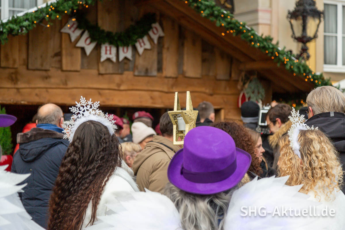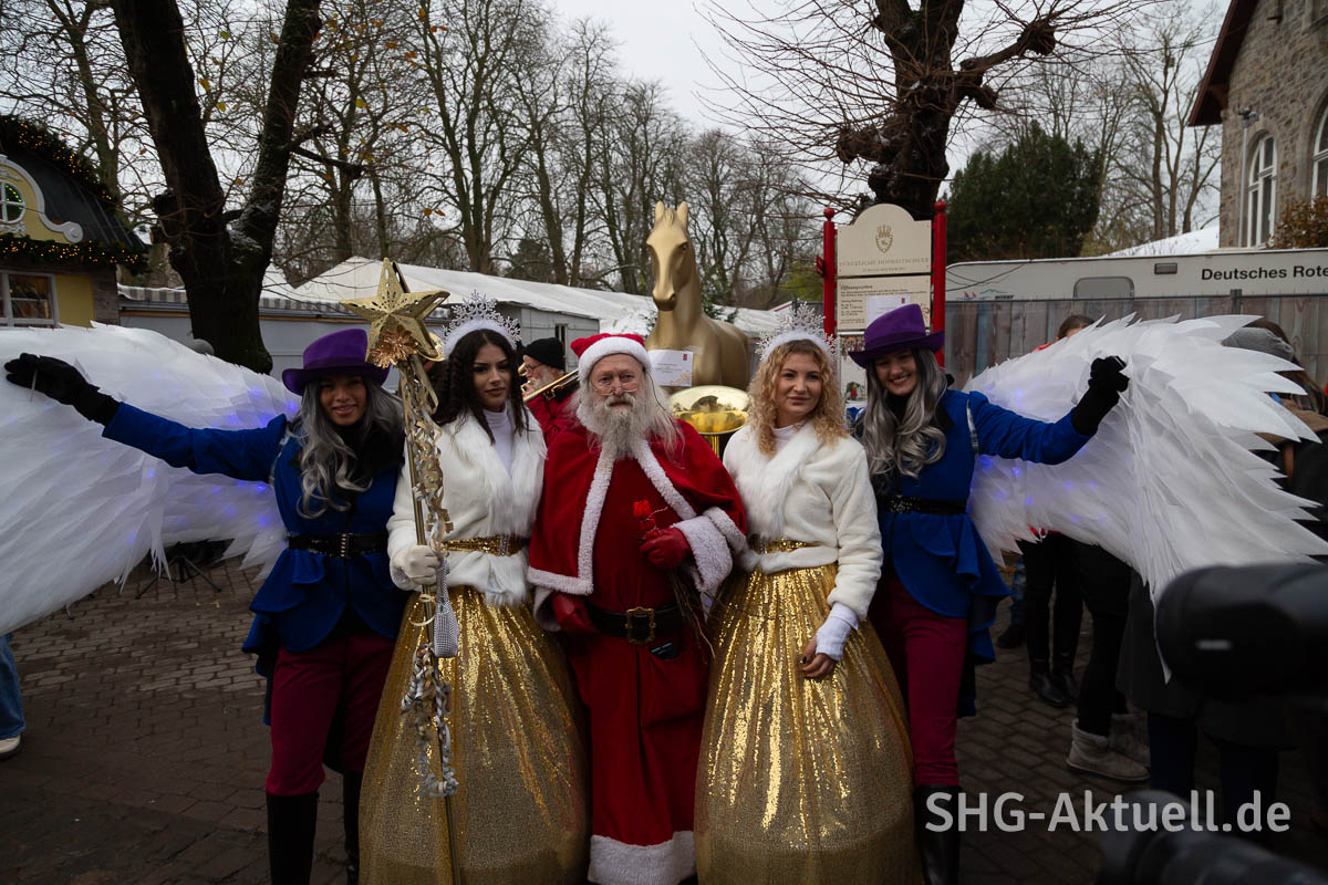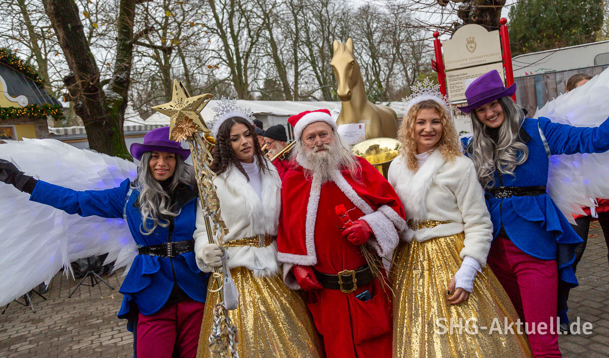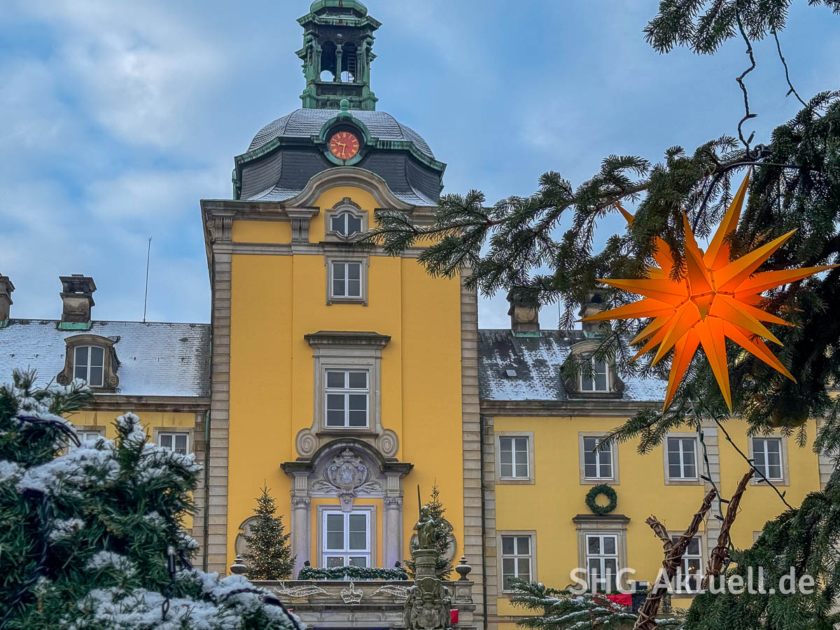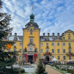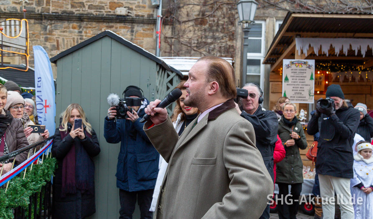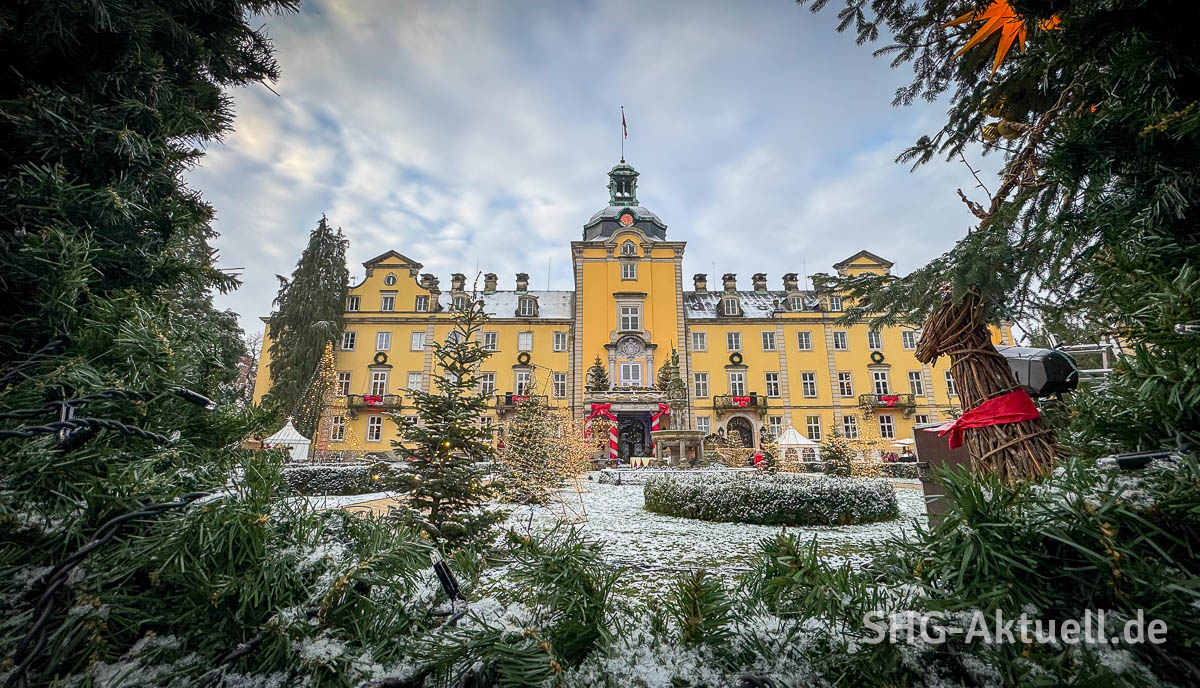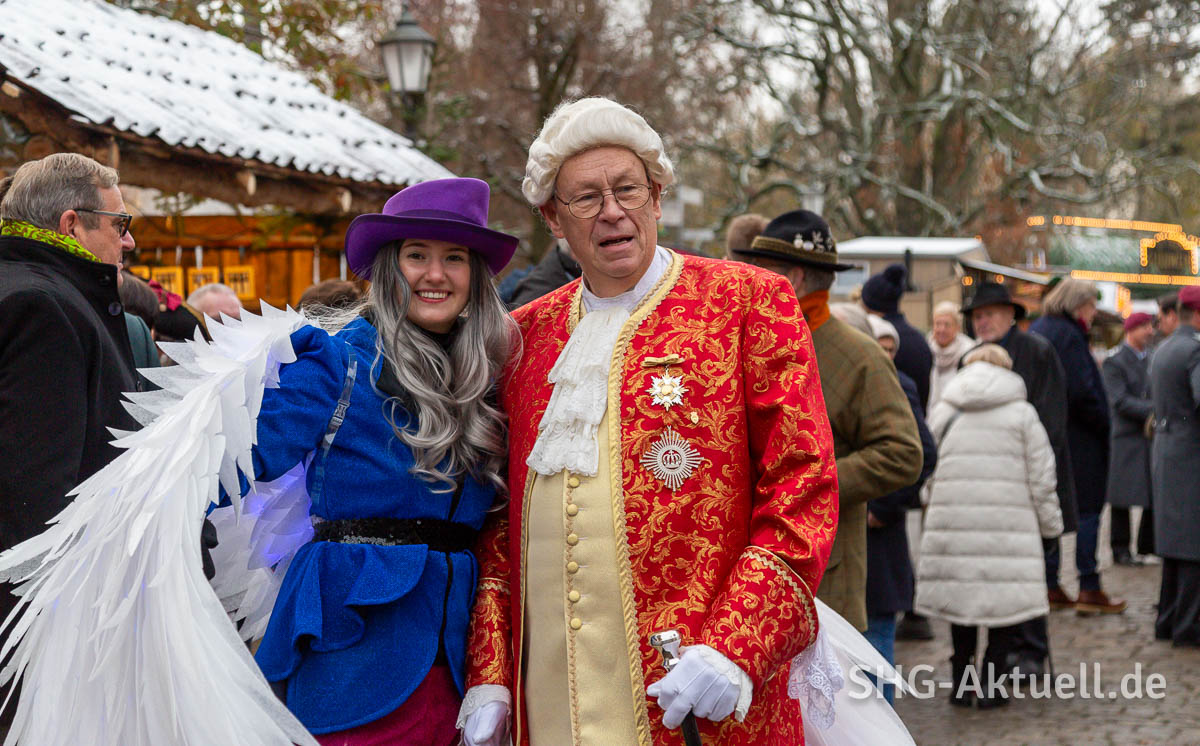 Der runde Geburtstag der überregional beliebten Großveranstaltung steht unter dem Motto „Der Weihnacht heller Lichterglanz“ und ganz in diesem Sinne erstrahlt auch das Gelände samt Schlosspark in weihnachtlicher Dekoration, mit Figuren, Weihnachtsschmuck und festlicher Beleuchtung, die mit Einsetzen der Dunkelheit so richtig zur Geltung kommt – darum empfahl der Schlossherr, bis zum Abend zu bleiben. Und noch eine Überraschung gab es zum Auftakt: Das Schloss und die Umgebung präsentieren sich dank des frisch gefallenen Schnees in einer romantisch-verzuckerten Atmosphäre, wie bestellt zum Jubiläum.