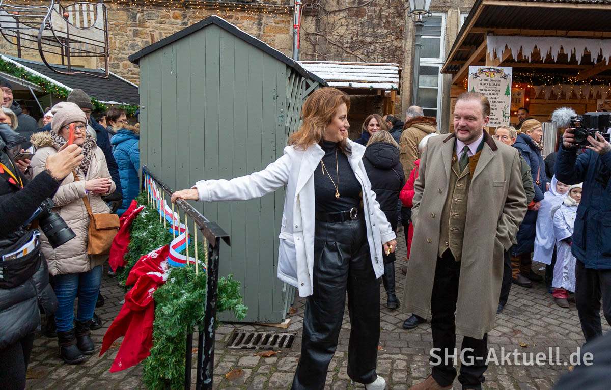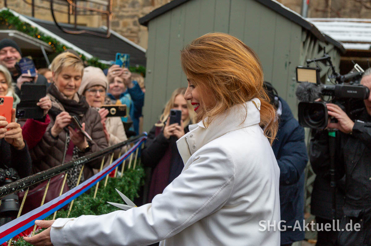 (Bückeburg) Der 20. Weihnachtszauber auf Schloss Bückeburg ist eröffnet. Mahkameh Fürstin zu Schaumburg-Lippe hat im Beisein ihres Ehemannes Alexander am heutigen Donnerstag das Band in den bekannten Farben des Fürstenhauses (weiß, rot, blau) durchtrennt und die wartenden Gäste am Schlosstor hereingelassen. Zuvor waren zahlreiche Aussteller noch mit den letzten Vorbereitungen beschäftigt, rückten die Dekoration zurecht und bereiteten sich auf den Start vor.