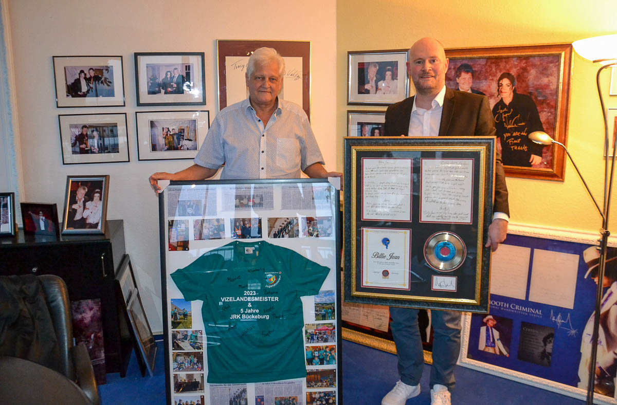 Als Gegenbeweis seiner Wertschätzung überreichte Dieter Wiesner seinerseits Sven Lampe eine außergewöhnliche gerahmte Lithographie des Songtextes von „Billie Jean“ von Michael Jackson. Dieses einzigartige Geschenk und Unikat spiegelt die tiefe Verbundenheit und Wertschätzung zwischen beiden Seiten wider und wird in Kürze über die renommierte Auktionsplattform United Charity für die ehrenamtliche Arbeit des DRK in Bückeburg versteigert werden.