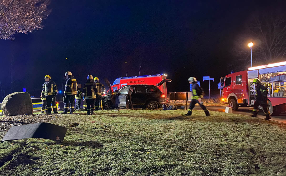 Nach einem Verkehrsunfall auf dem Kreisel „Dreiländereck“ traten an dem beteiligten PKW, einem VW Touareg, Betriebsstoffe aus.