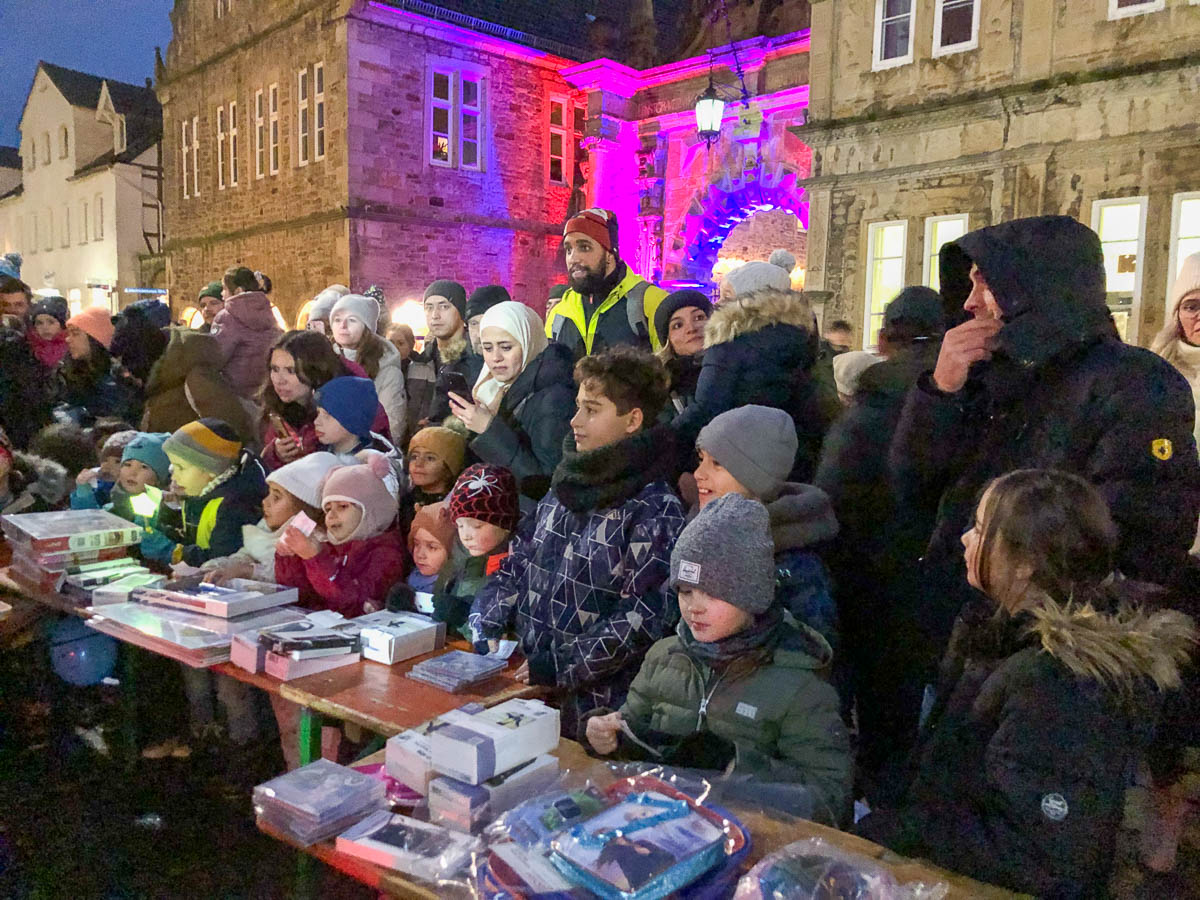 (Bückeburg) Kaum war das Tageslicht verschwunden und die Stadt in die bunten Lichter von Weihnachtszauber und Festtagsbeleuchtung gehüllt, sammelten sich hunderte Bückeburger Kinder samt ihren Eltern auf dem Marktplatz.