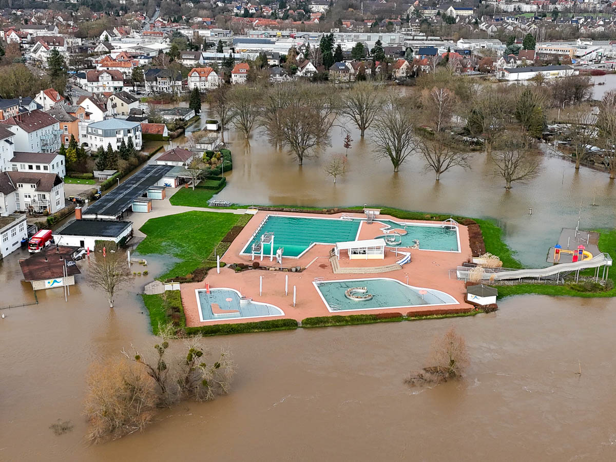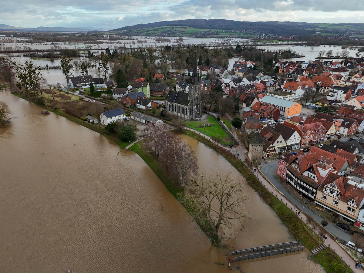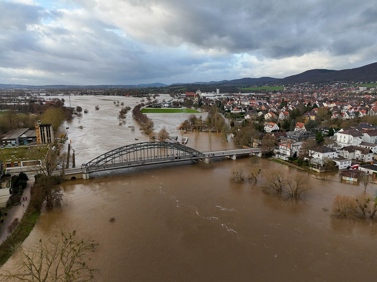 Es sollen daher unnötige Fahrten und Besuche im Stadtgebiet vermieden werden: „Meiden Sie den hochwassergefährdeten Bereich und behindern Sie keine Einsatzkräfte. Entsprechende Hinweisschilder werden morgen in der Fußgängerzone von der Stadt Rinteln verteilt.“